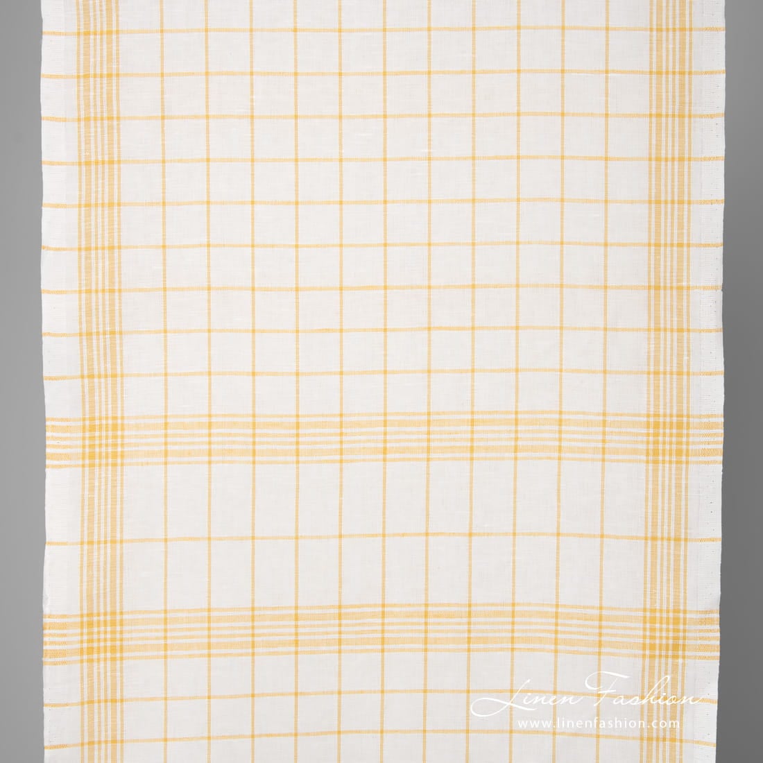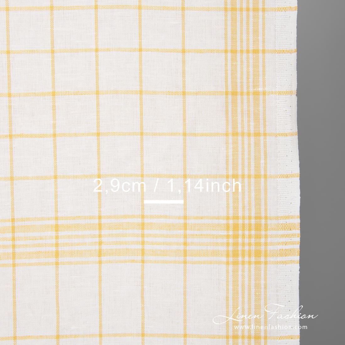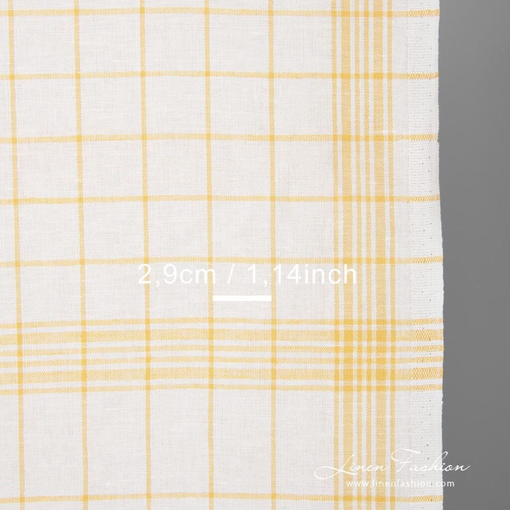 Biela ľanovo-bavlnená tkanina so žltými kárami