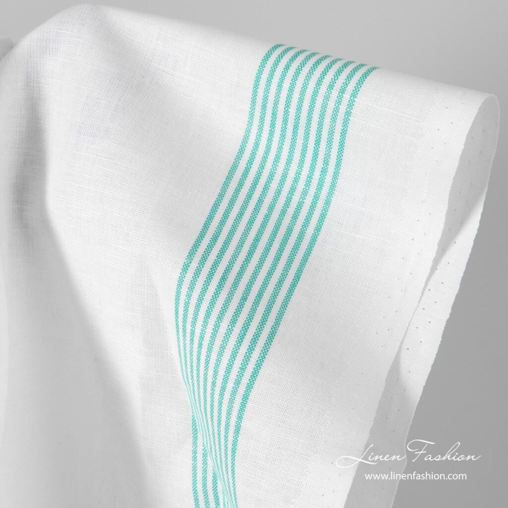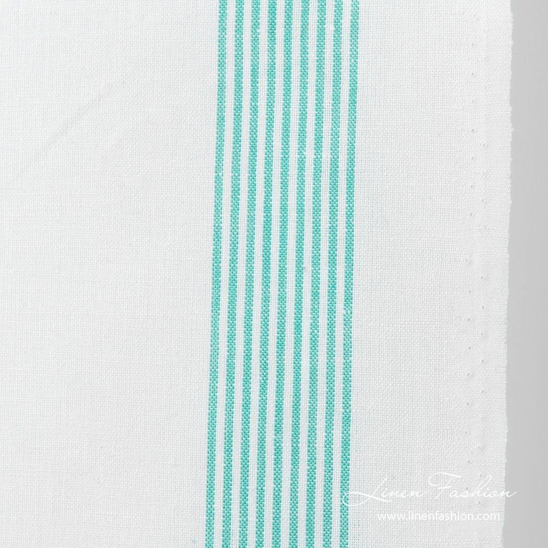Biela ľanovo-bavlnená tkanina so zelenými prúžkami úzka