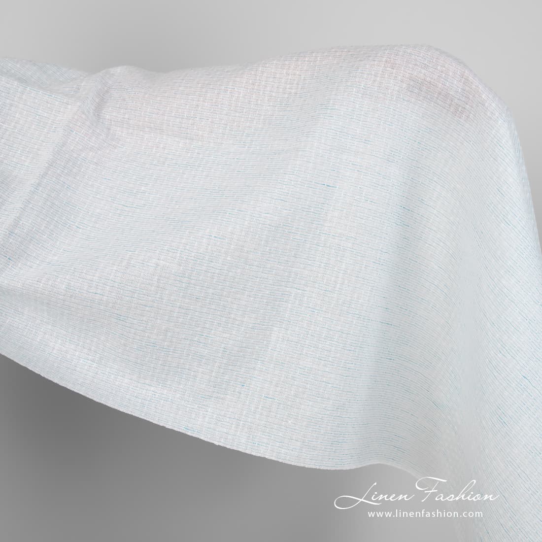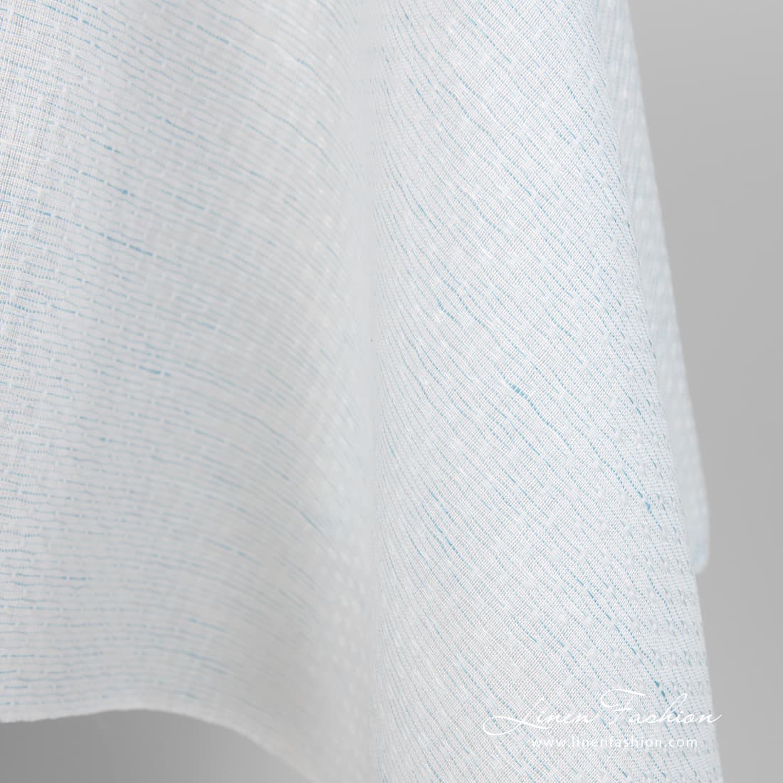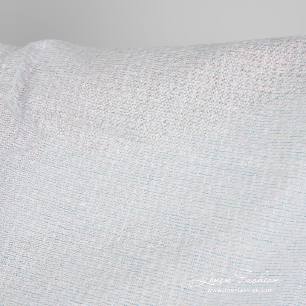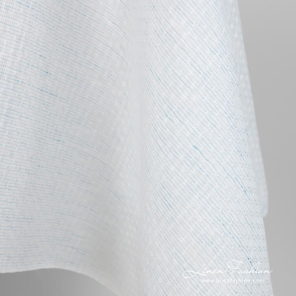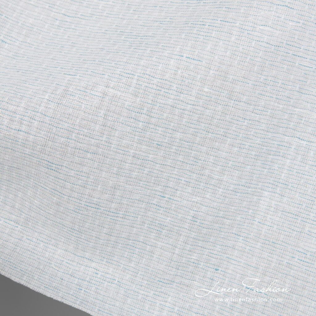 Ľanovo-bavlnená tkanina, modrasto biely vzor