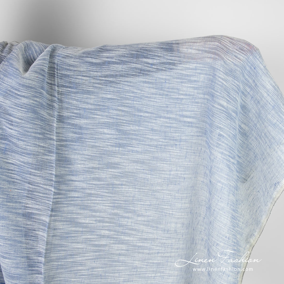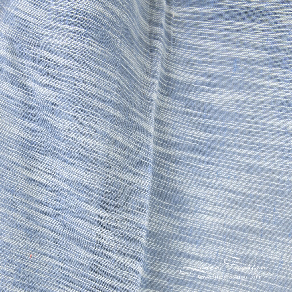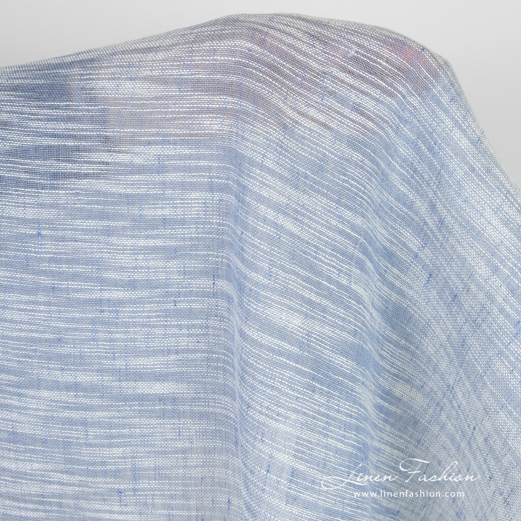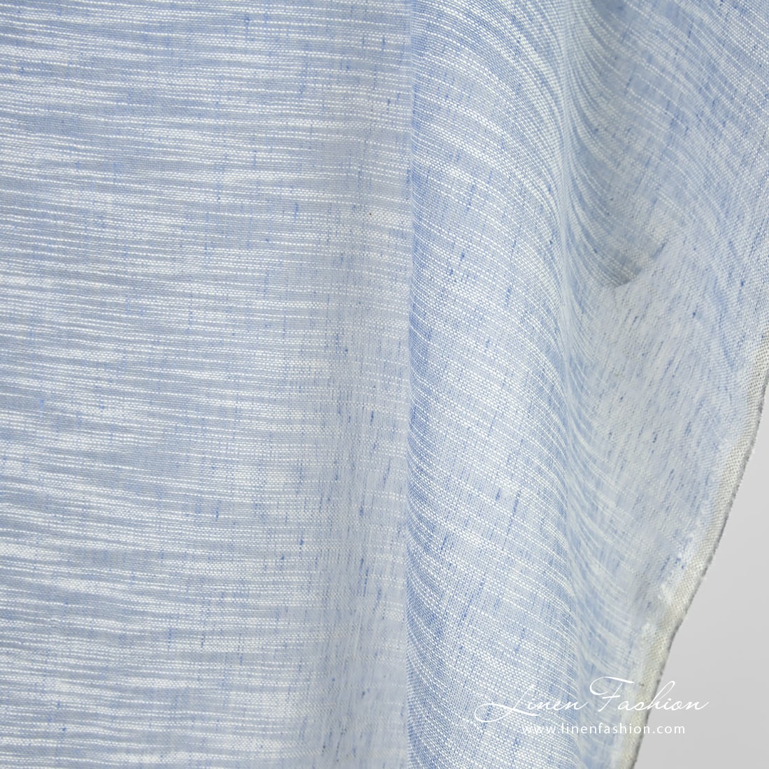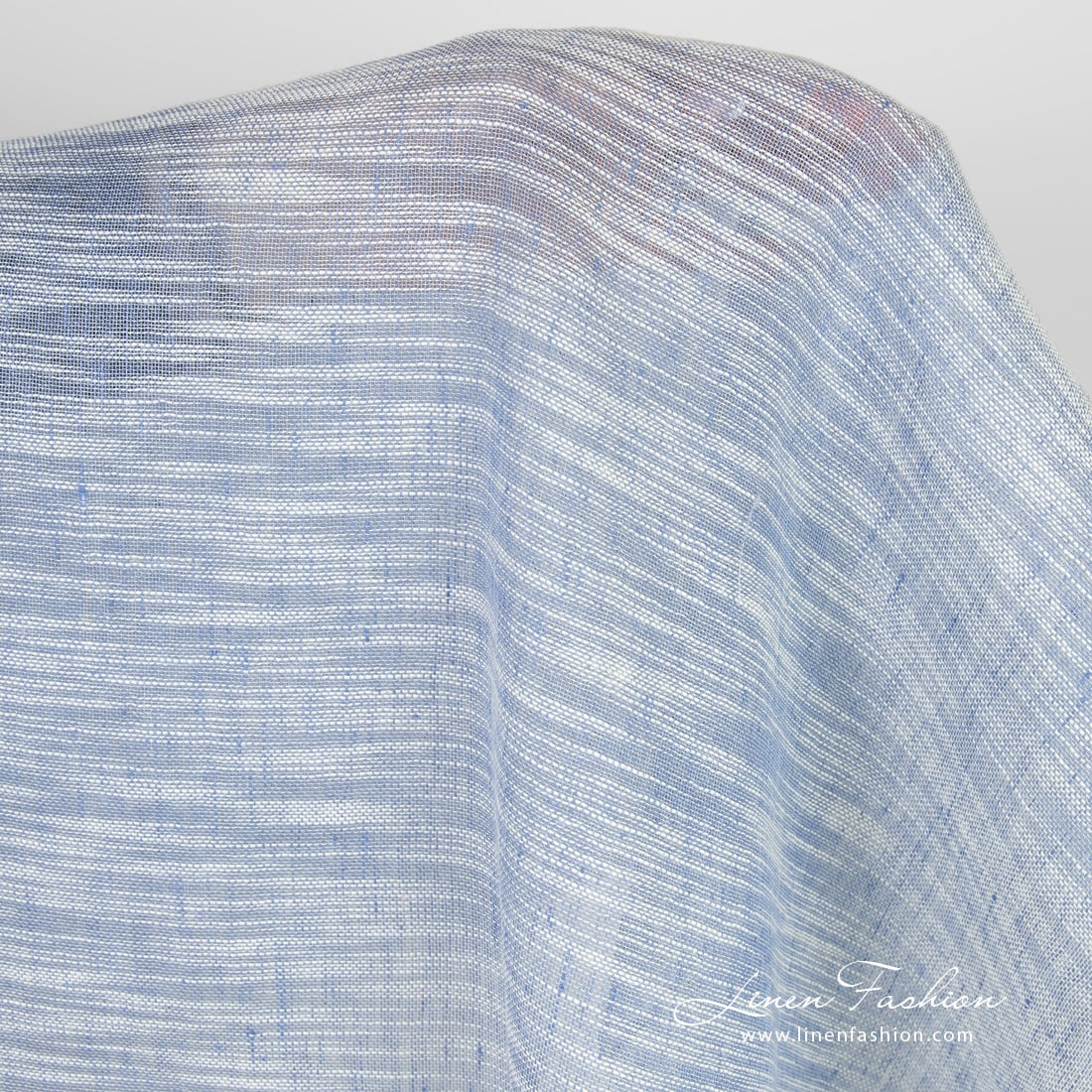 Modrá ľanovo-bavlnená tkanina s bielymi pruhmi