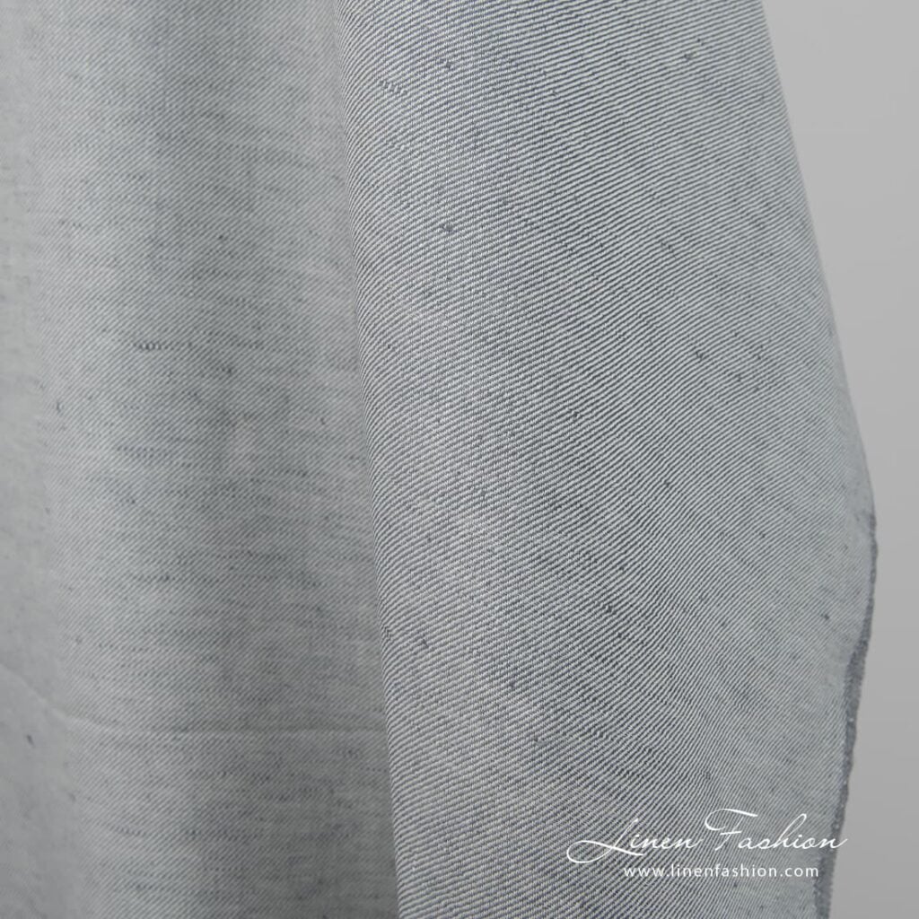 množstvo Ľanovo-bavlnená tkanina modrosivá keprová väzba