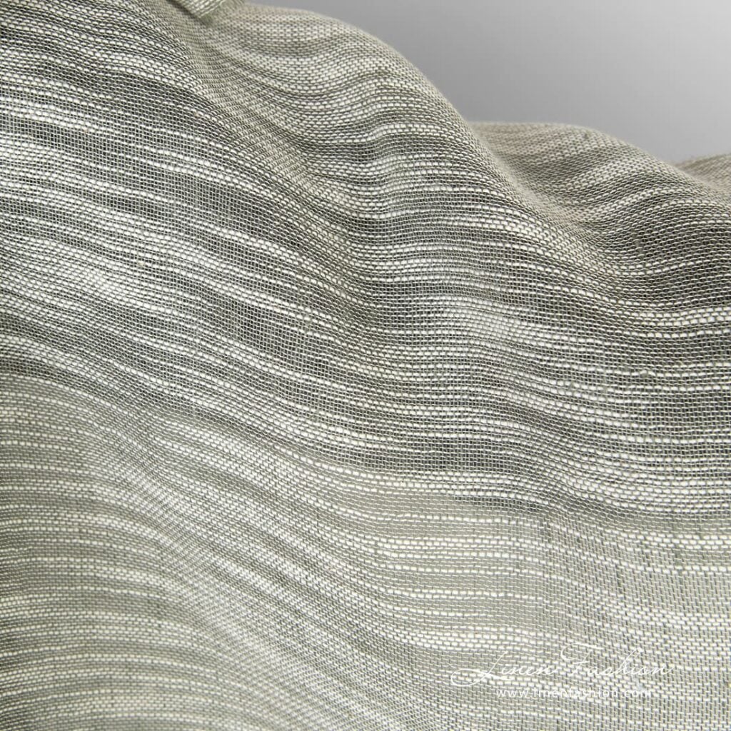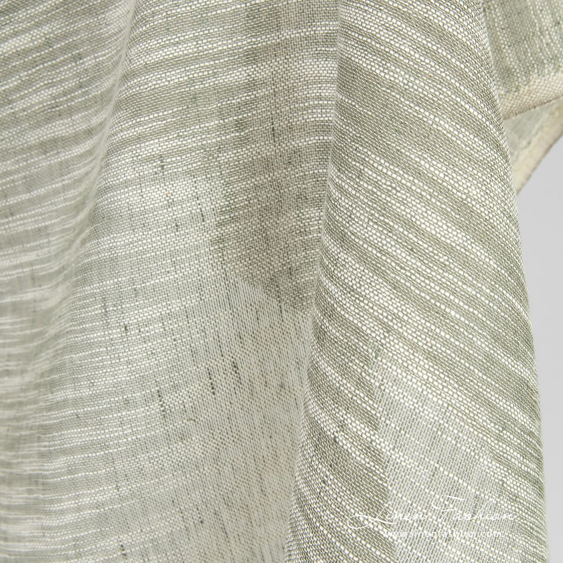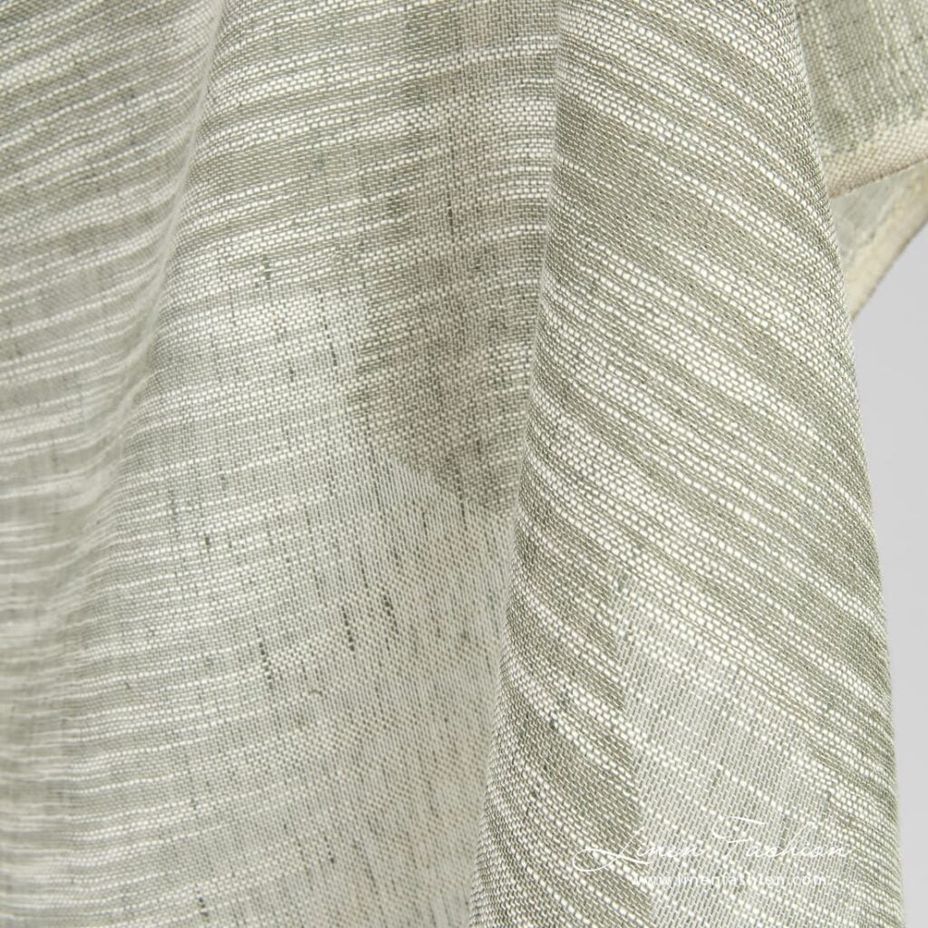 Ľanovo-bavlnená zelenkastá látka s bielymi pruhmi