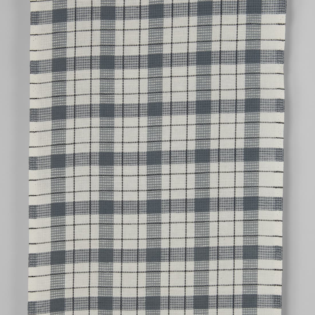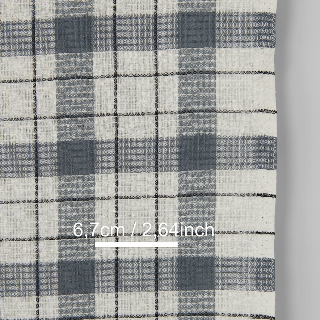 množstvo Úzka ľanovo-bavlnená látka smotanovo biela so sivými kockami vafľová