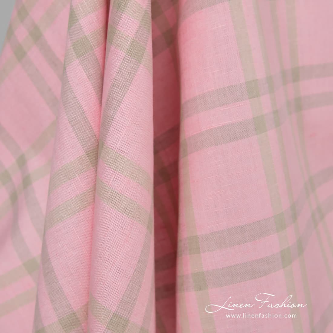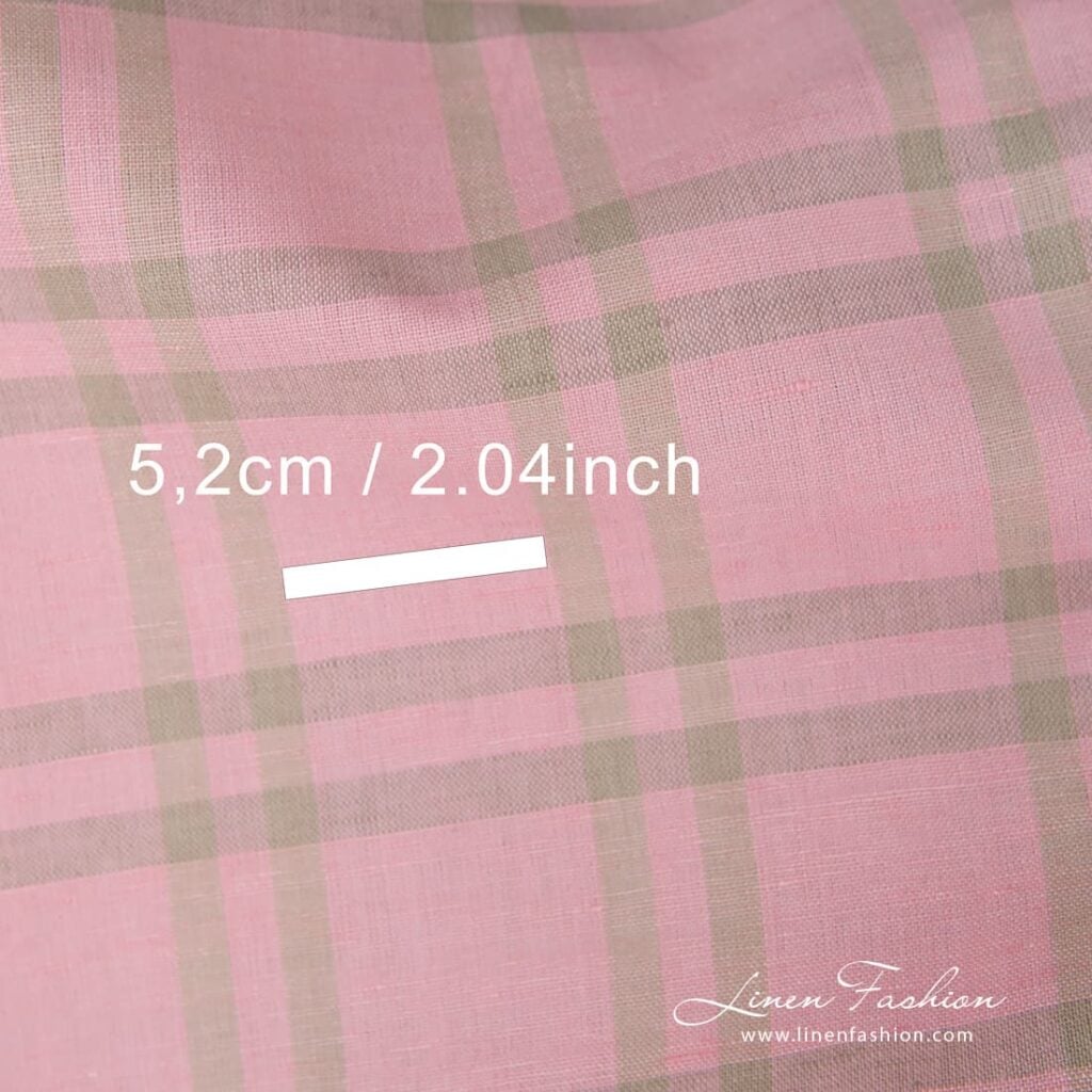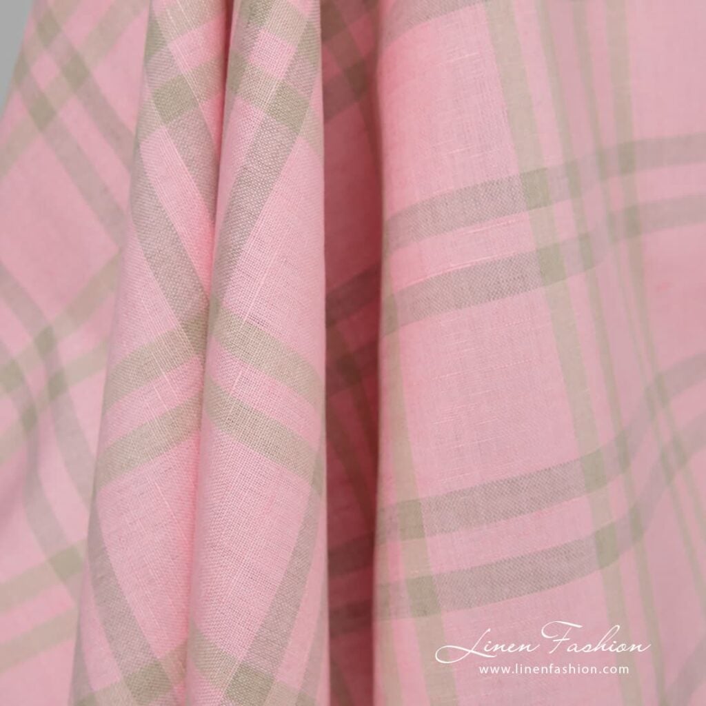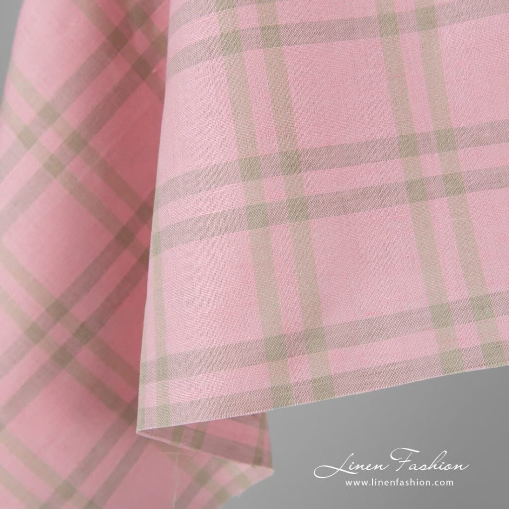 Ružová kockovaná ľanová bavlnená látka