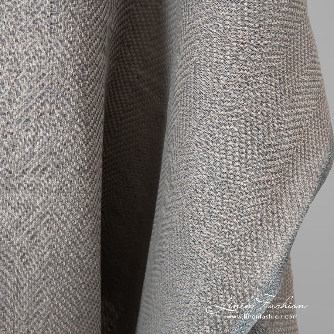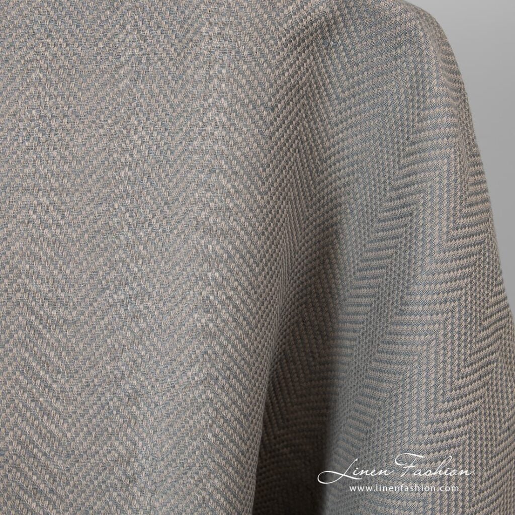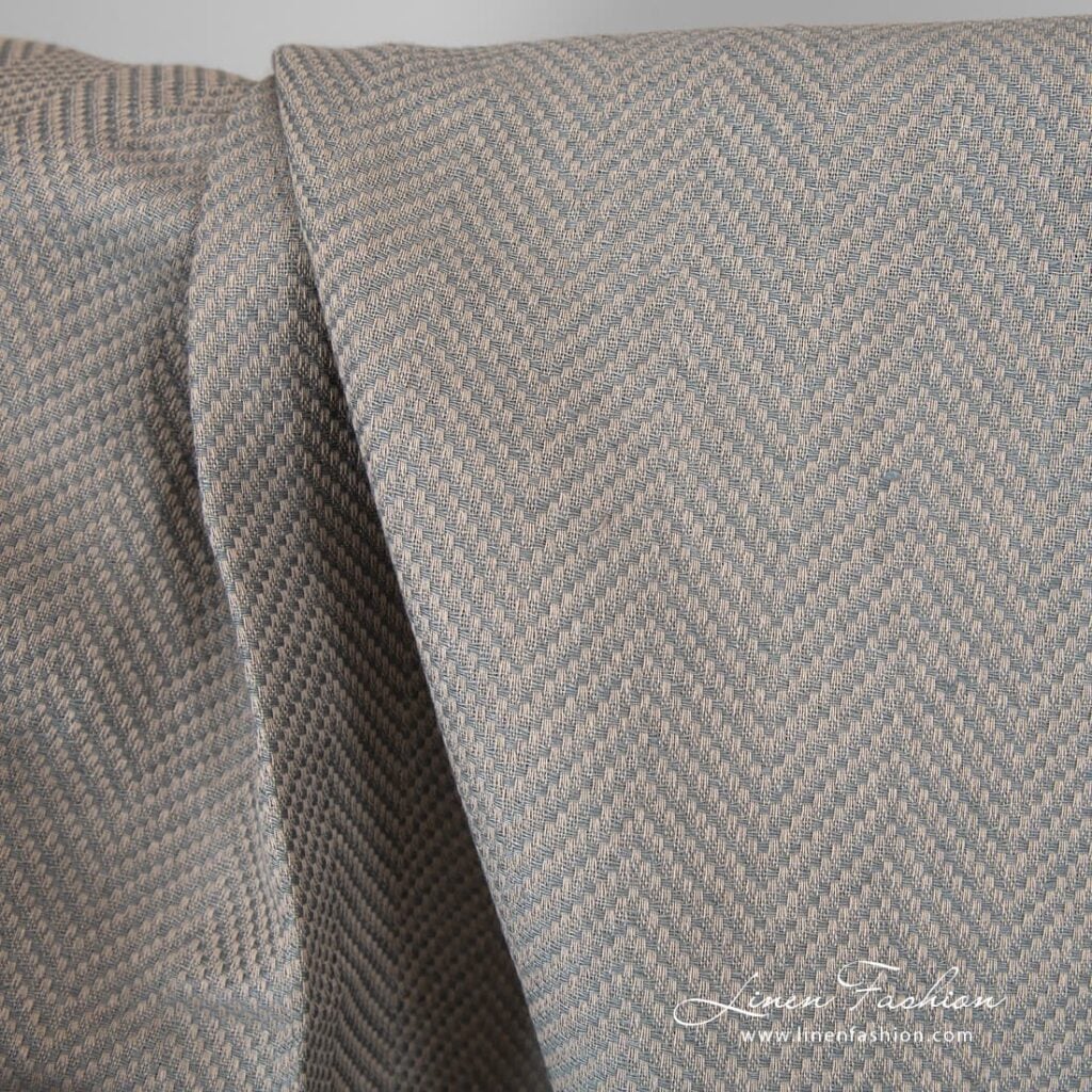 Sivá ľanovo-bavlnená tkanina so vzorom rybej kosti