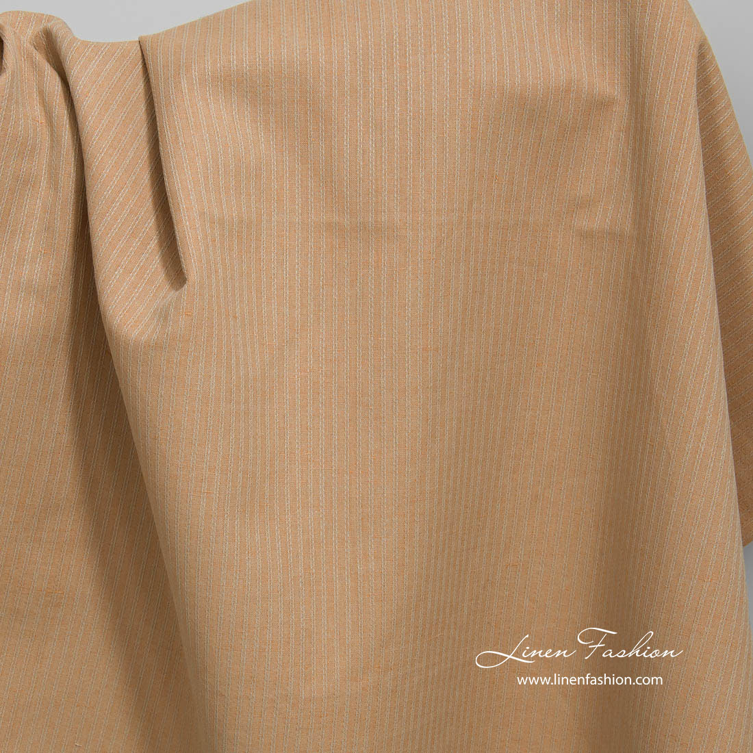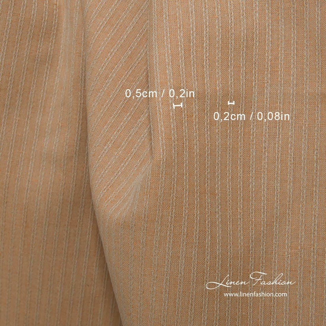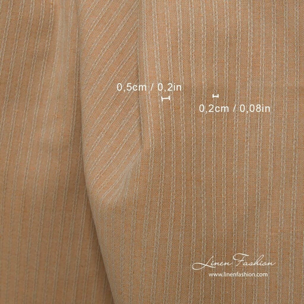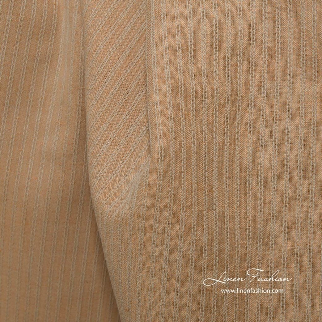 Ľanovo-bavlnená svetlohnedá látka s dekoratívnymi pruhmi