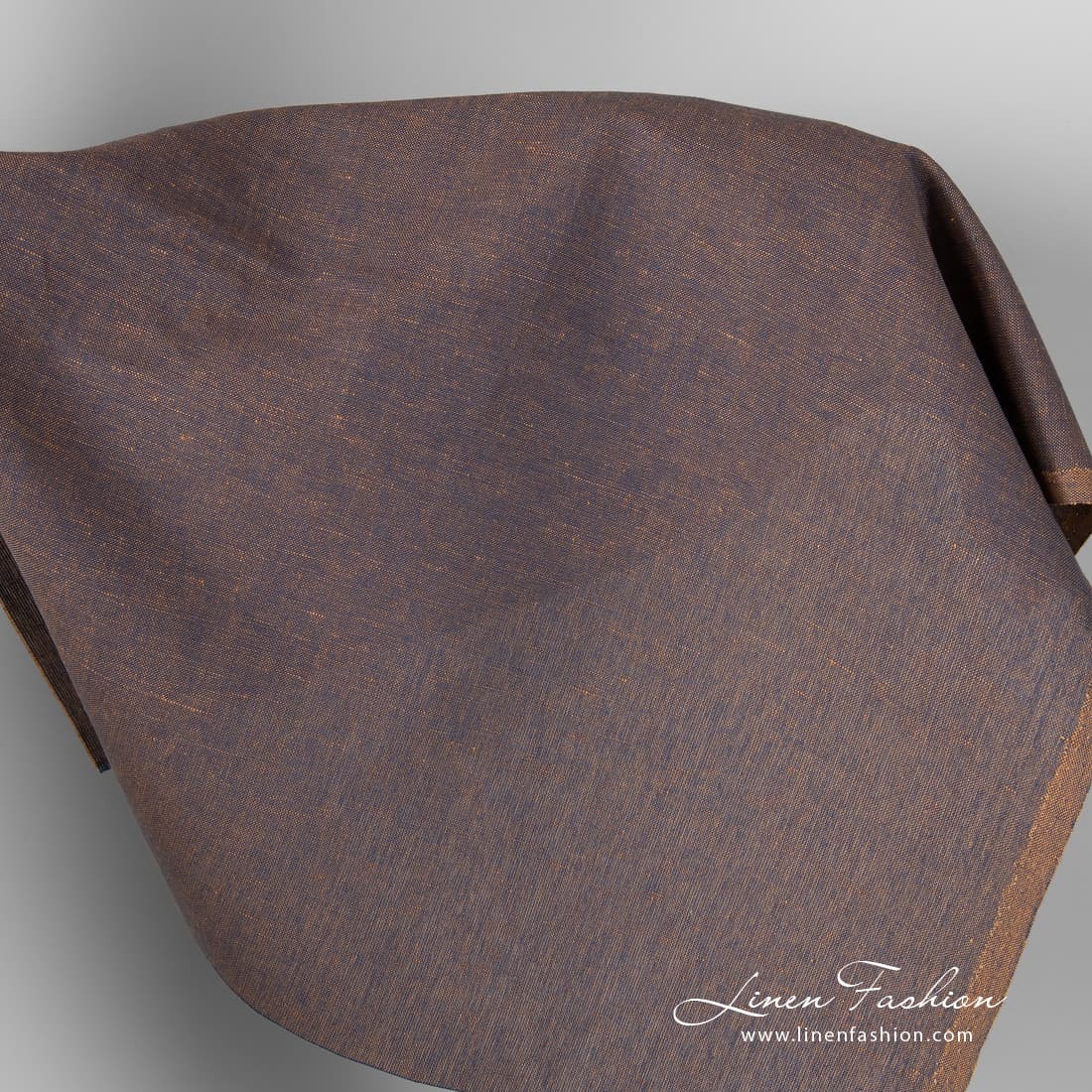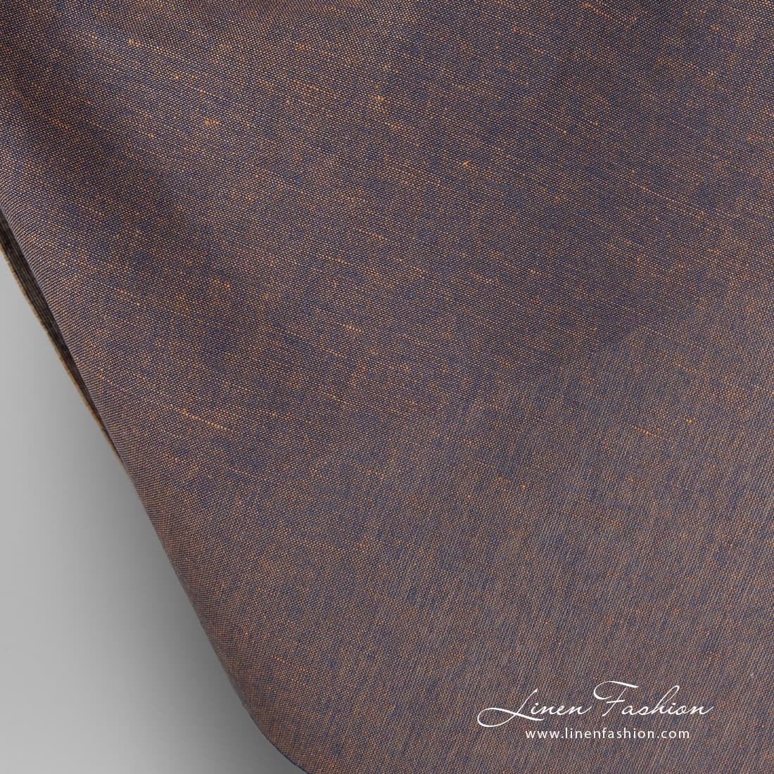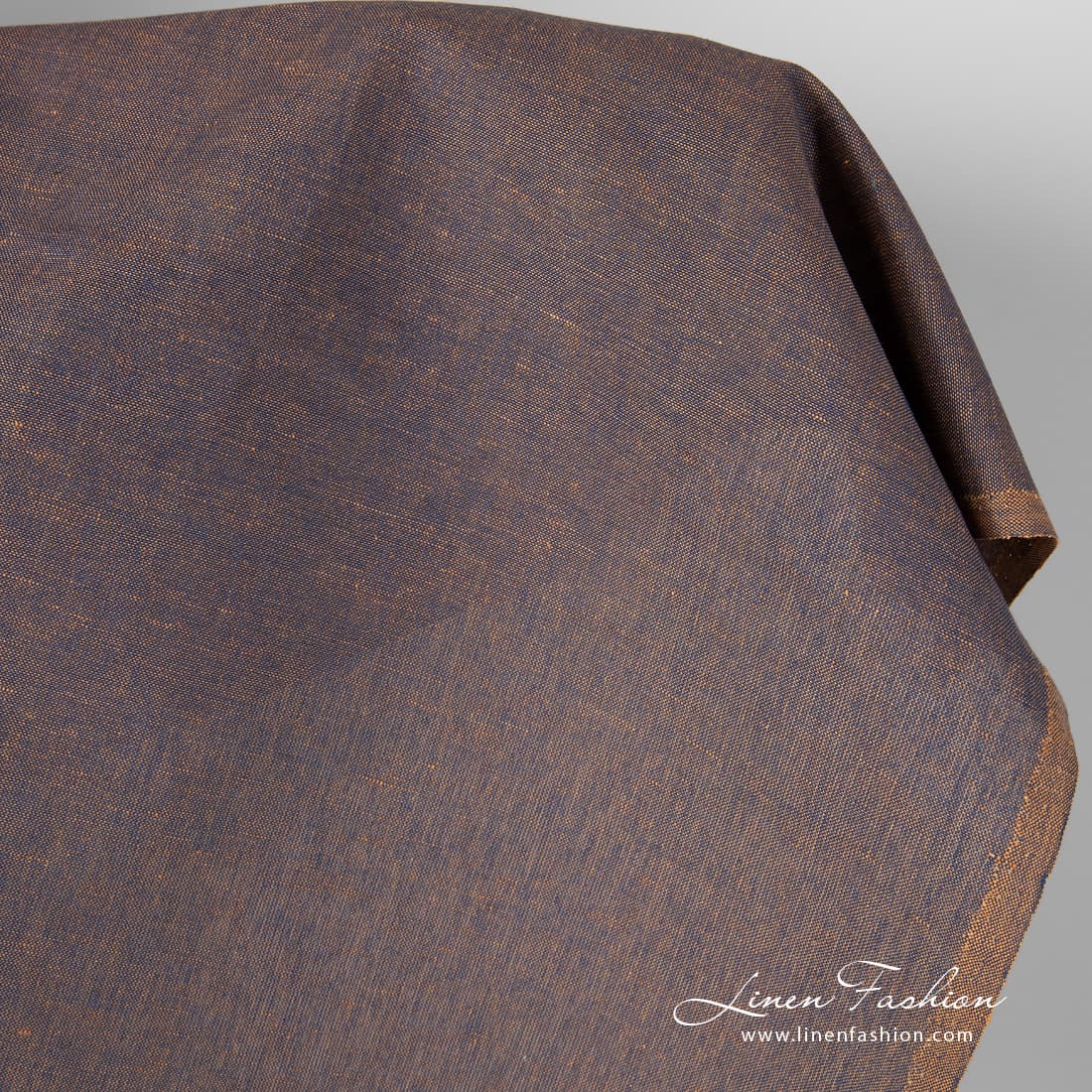 Melanžová hnedo-modrá ľanovo-bavlnená tkanina