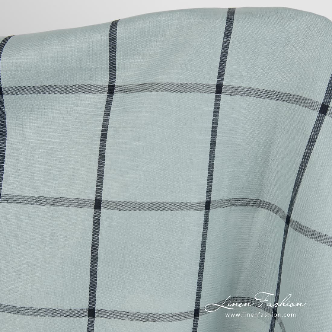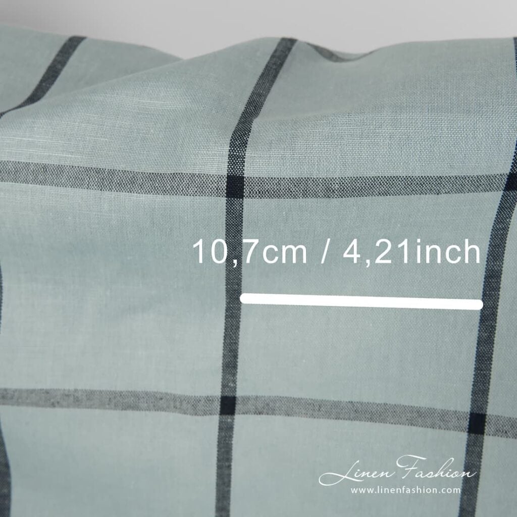 množstvo Bledo modrá ľanovo-bavlnená tkanina s čiernymi mriežkami