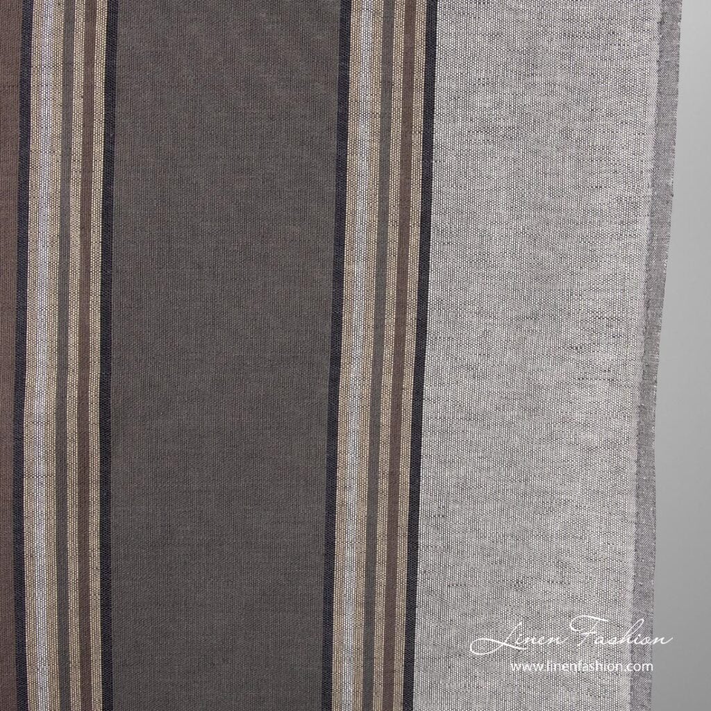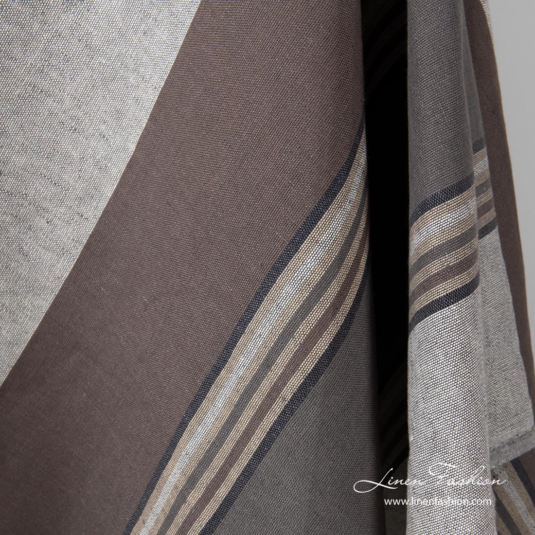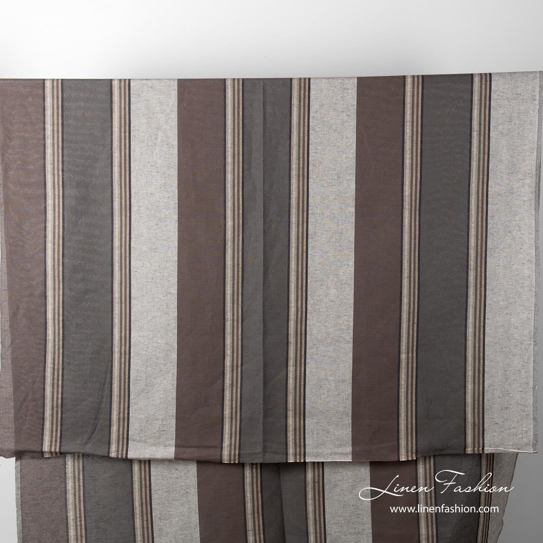 Ľanovo-bavlnená látka v hnedosivých pruhoch