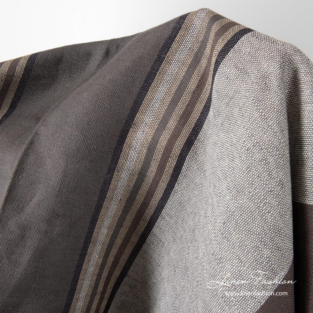množstvo Ľanovo-bavlnená látka v hnedosivých pruhoch