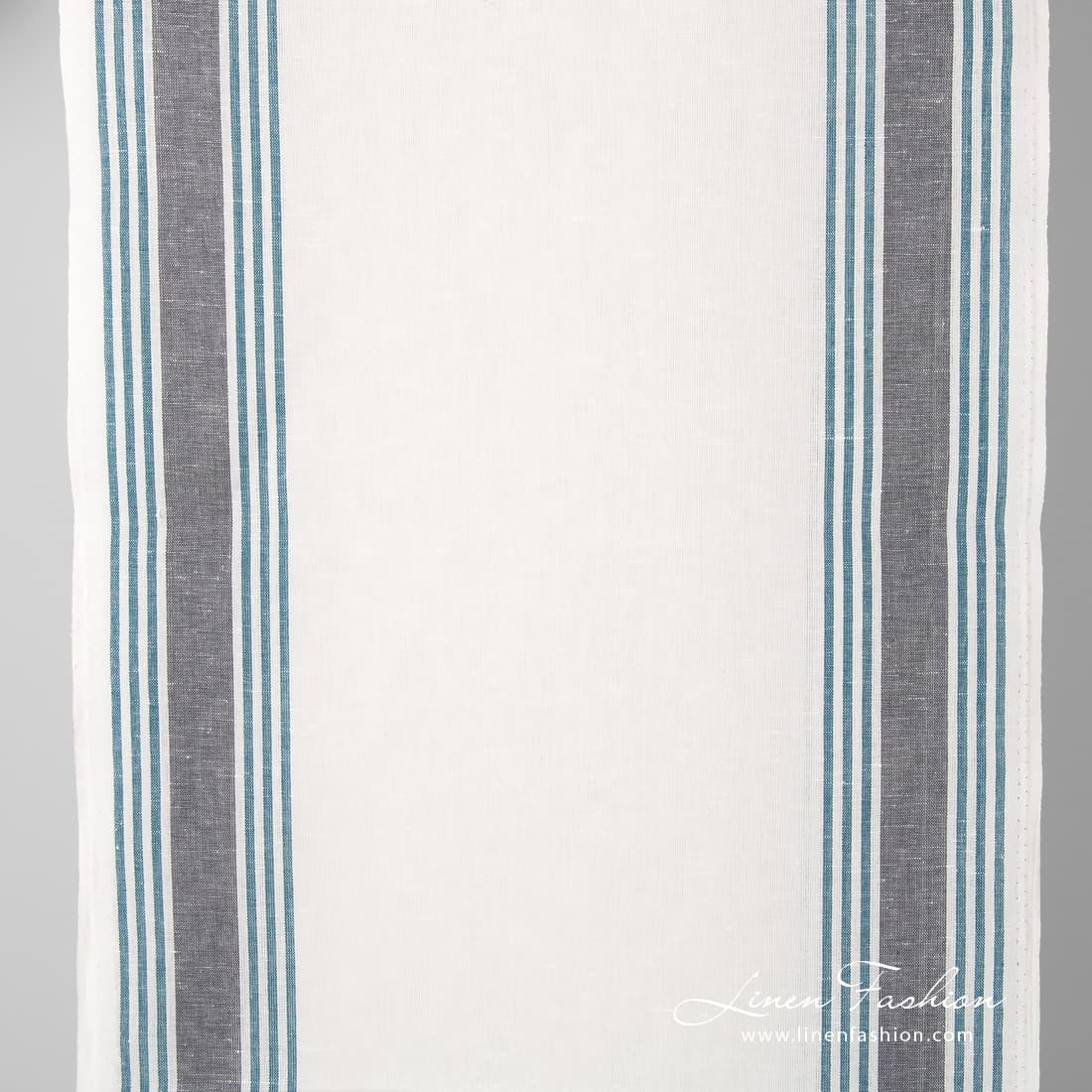 Lomená biela ľanovo-bavlnená tkanina s prúžkami