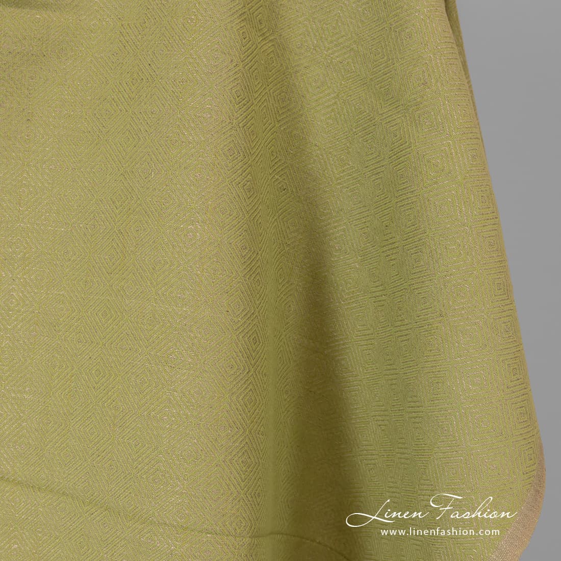 - Farba: zmes prírodného ľanu (nefarbený, hnedosivý) a jablkovo zelených farebných priadzí