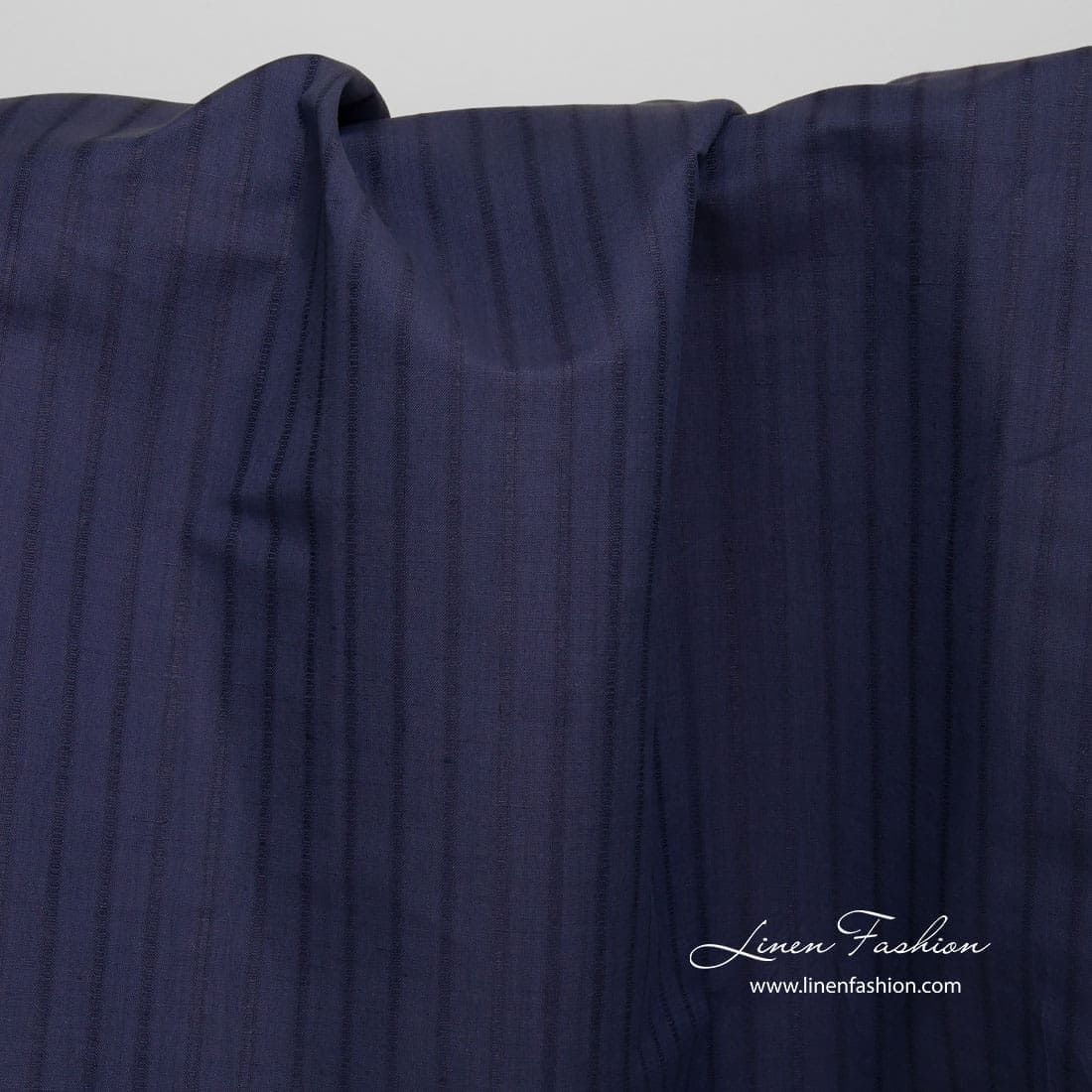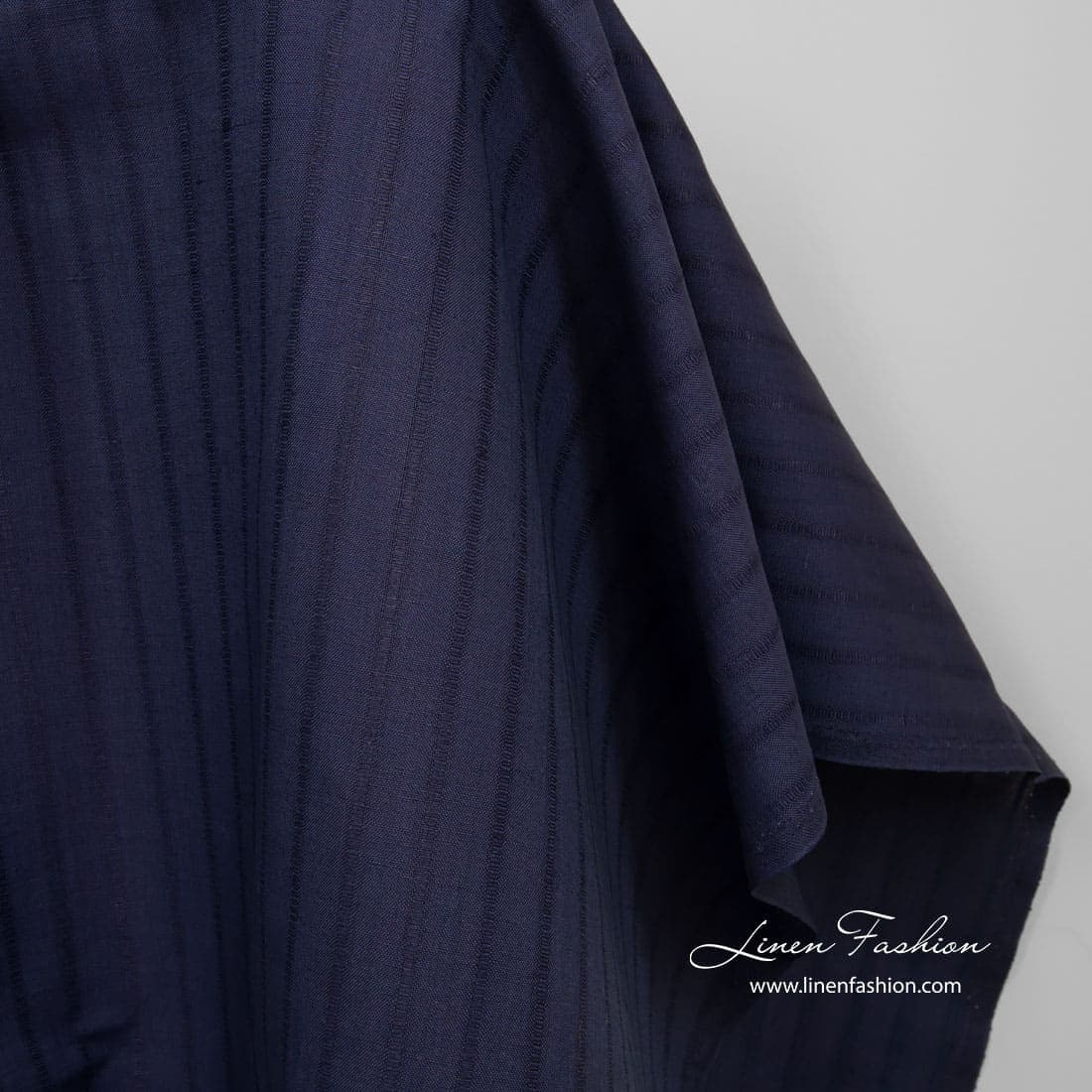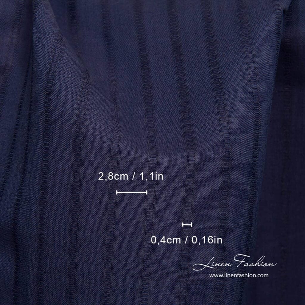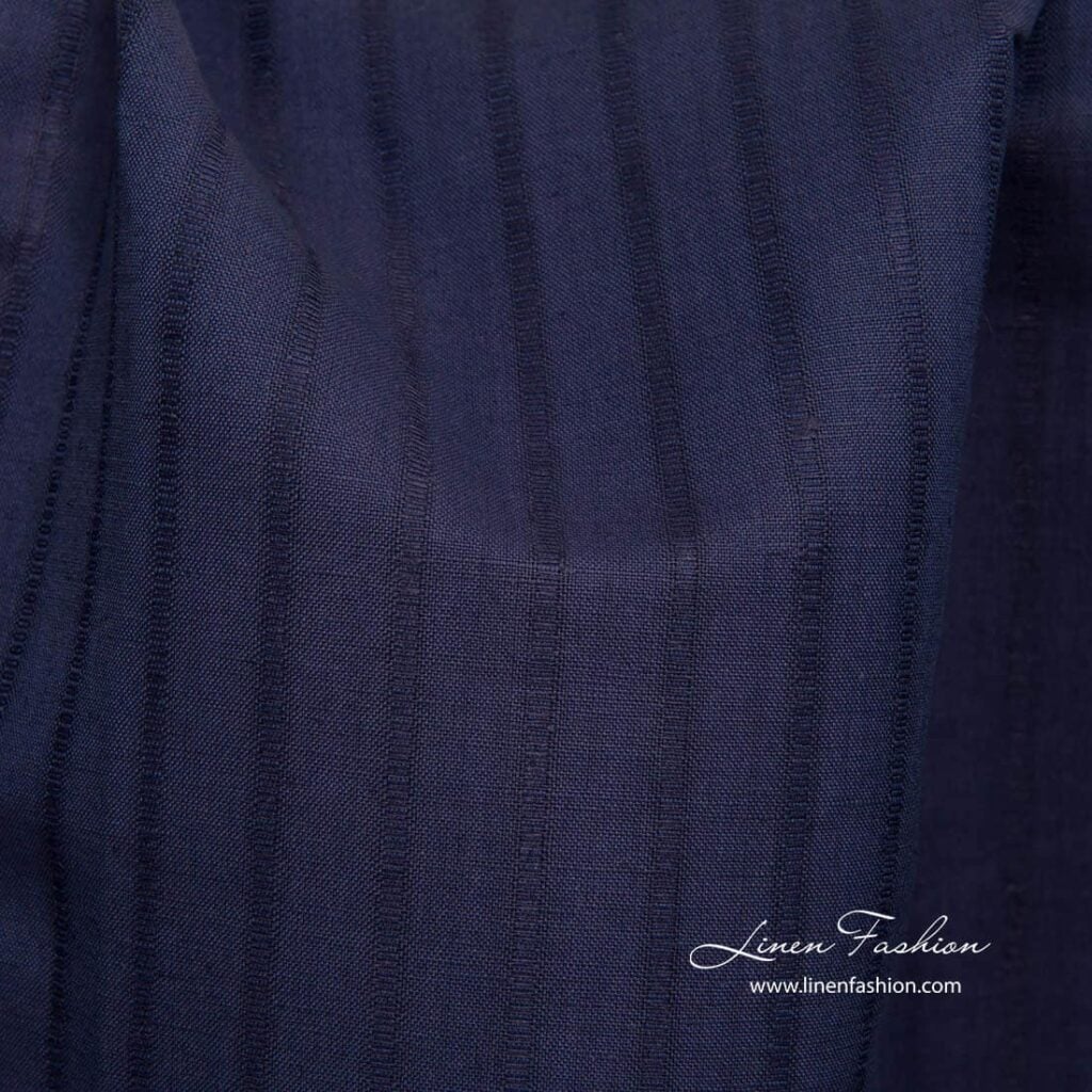 Tmavomodrá pruhovaná ľanovo-bavlnená tkanina