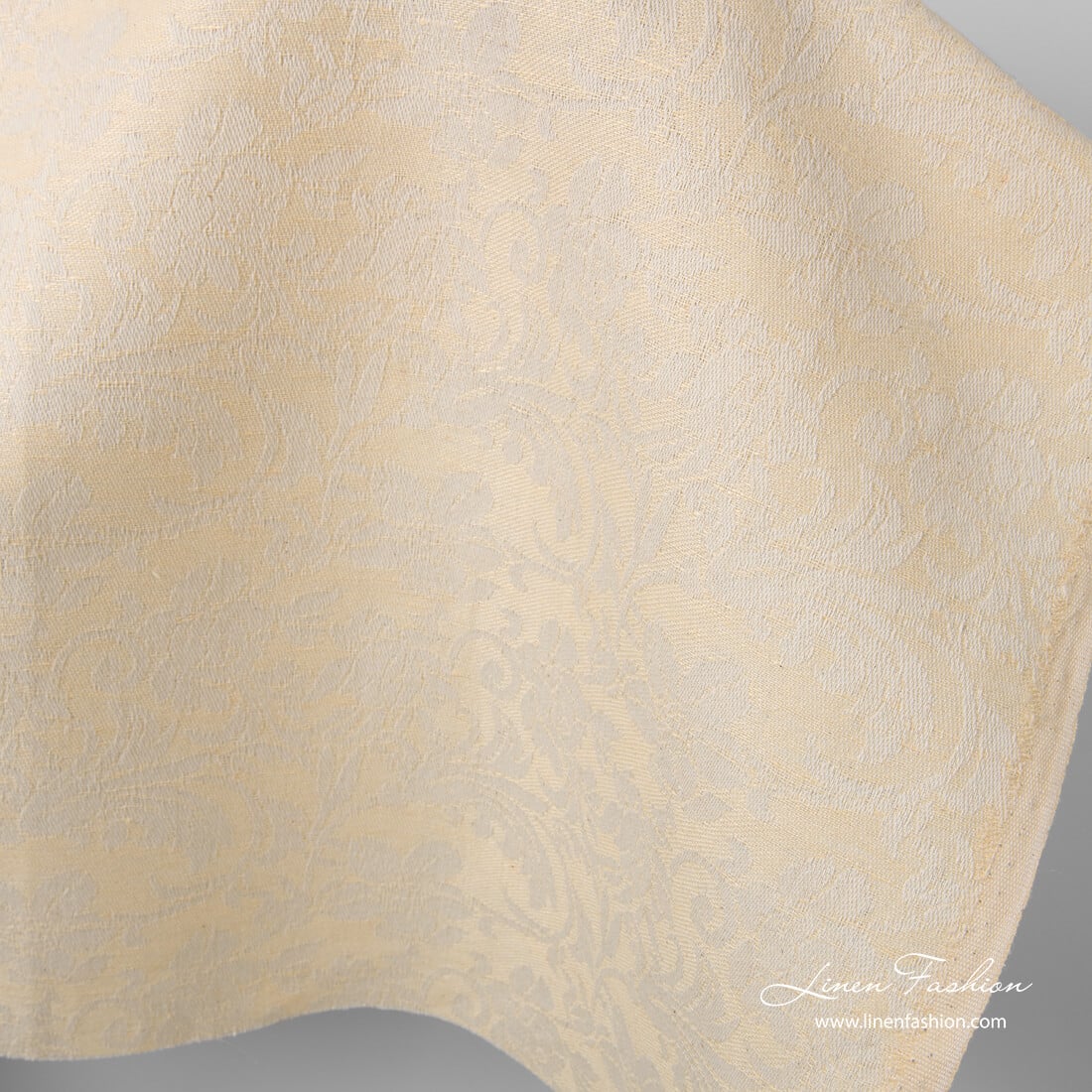množstvo Krémová ľanovo-bavlnená tkanina s kvetmi