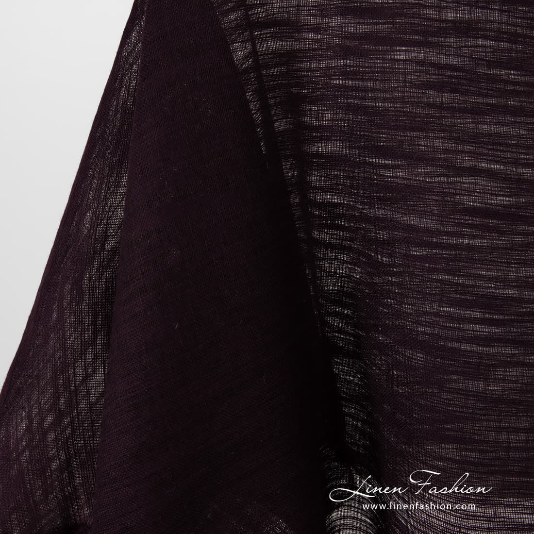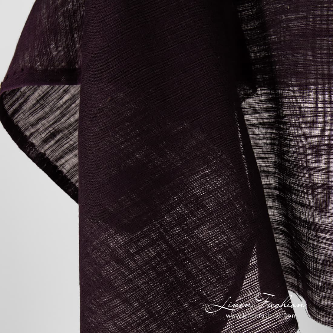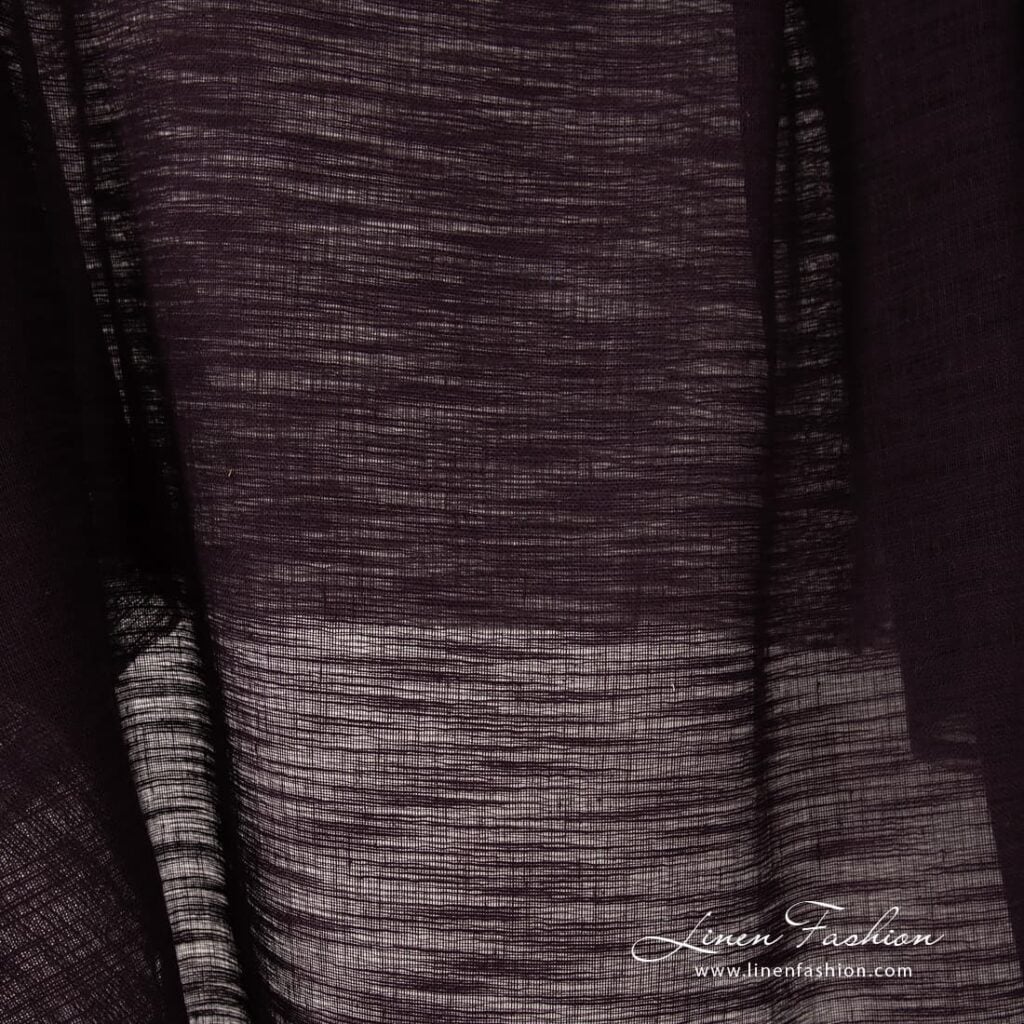 Baklažánová priesvitná ľanovo-bavlnená tkanina