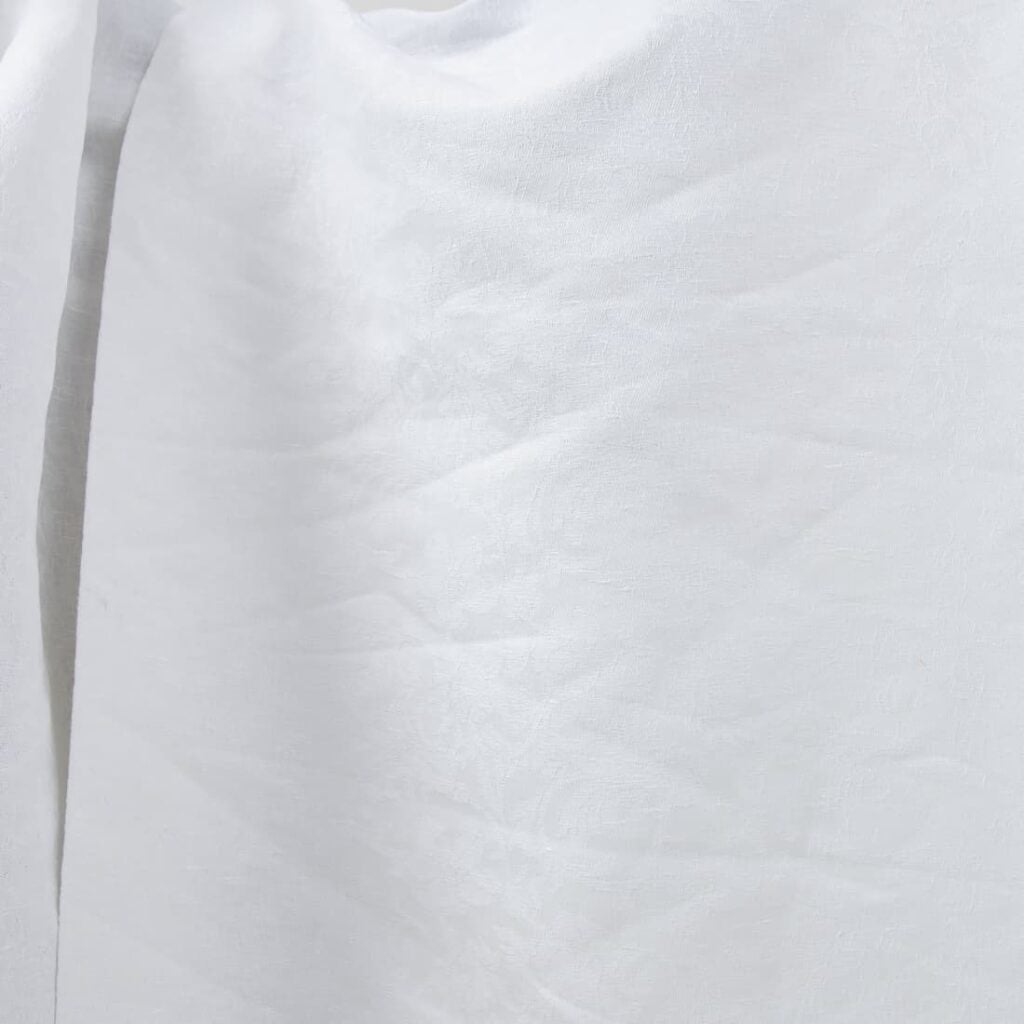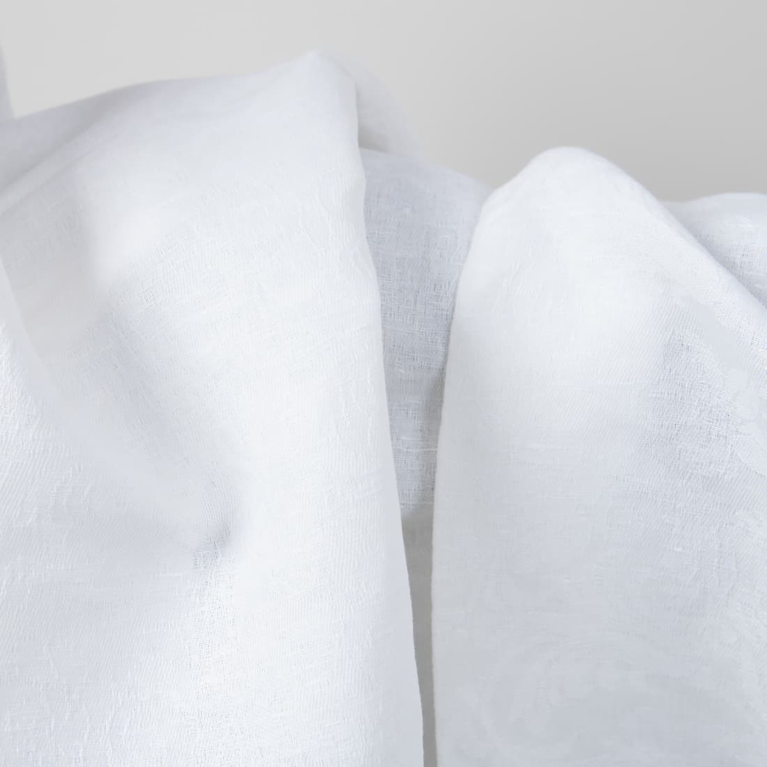 Opticky biela ľanovo-bavlnená tkanina s kvetinovými ornamentmi