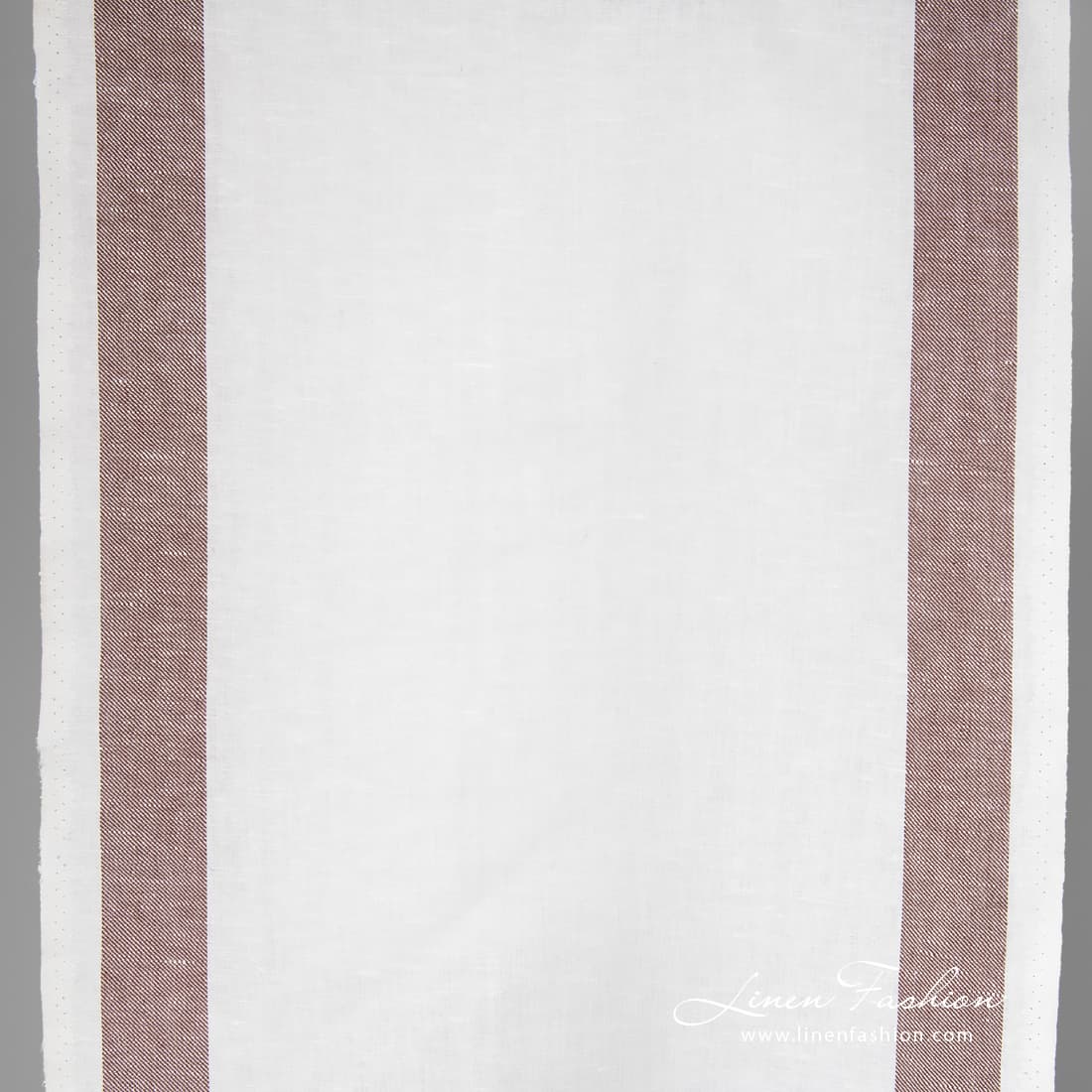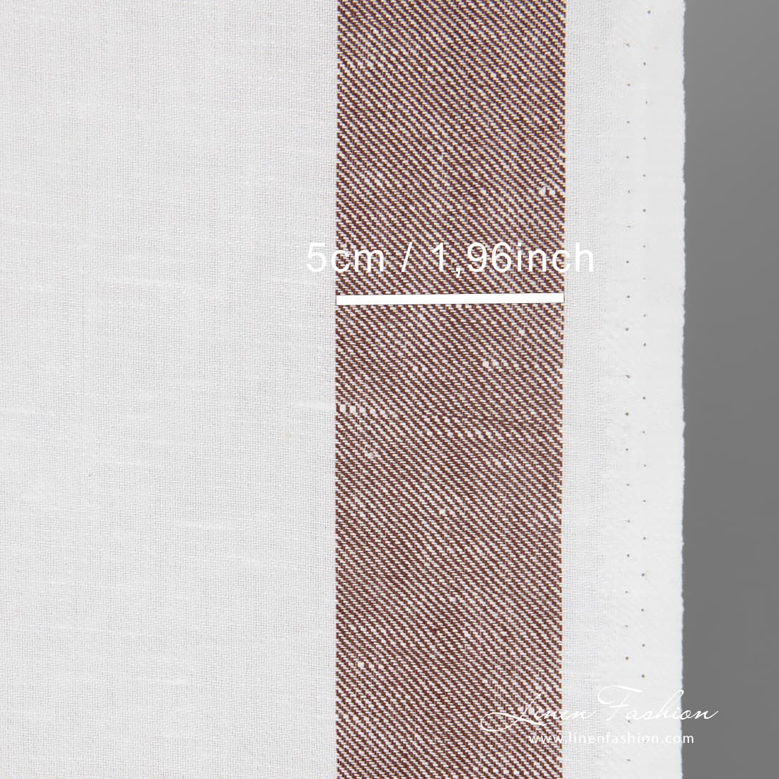 Ľanovo-bavlnená opticky biela tkanina s hnedými pruhmi