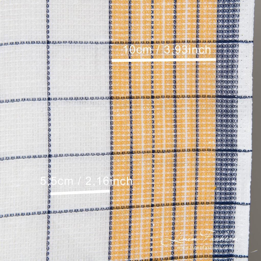 Biela, oranžová a modrá kockovaná ľanovo-bavlnená látka