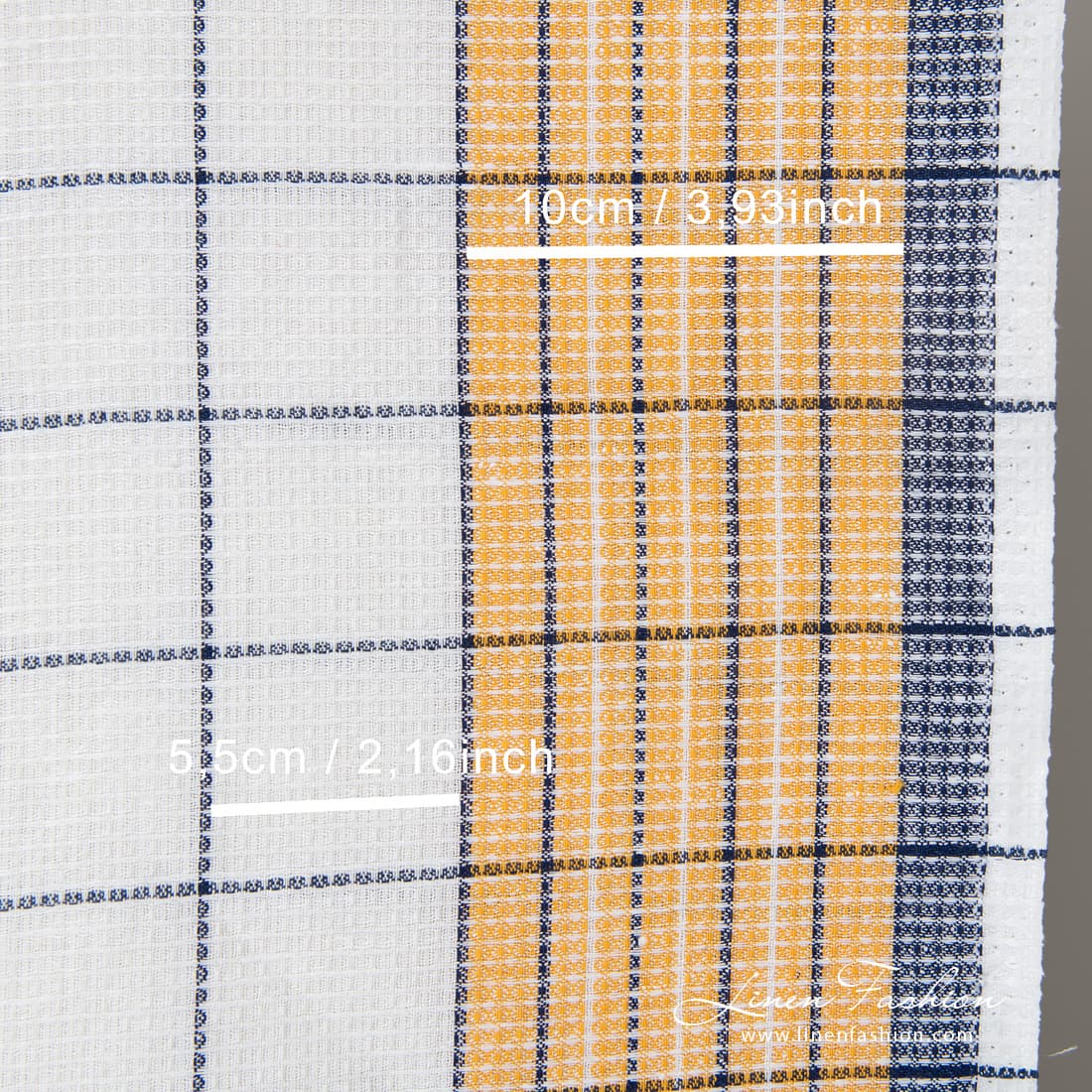 množstvo Biela, oranžová a modrá kockovaná ľanovo-bavlnená látka