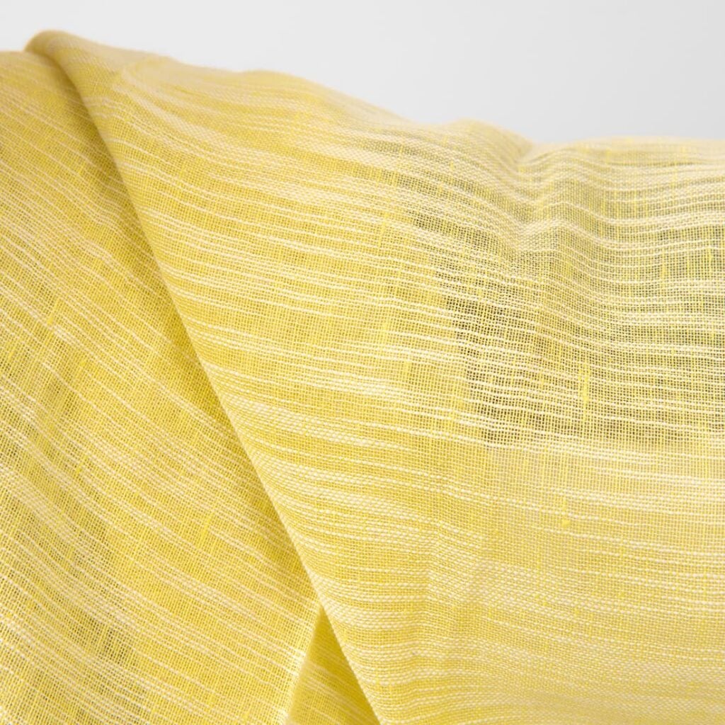 Žltá pruhovaná priehľadná ľanovo-bavlnená tkanina