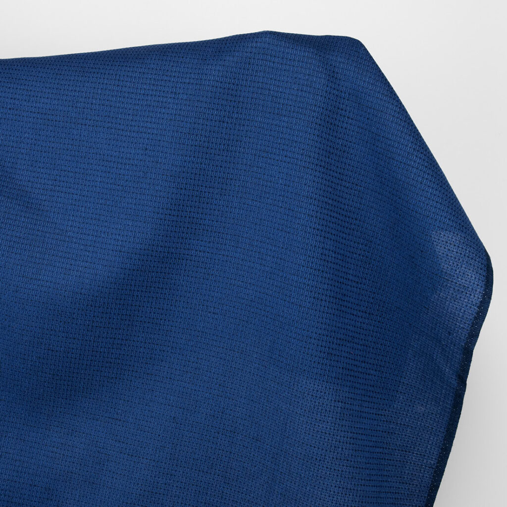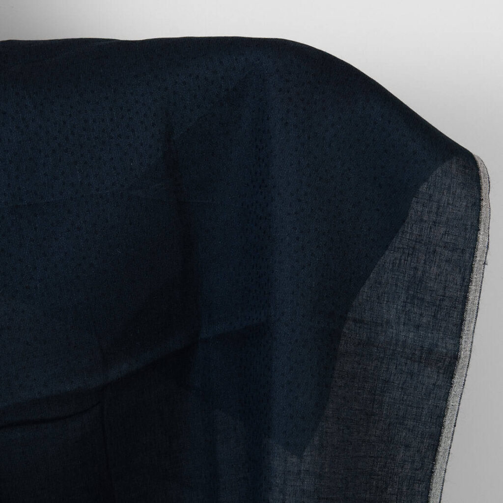 Ľanová bavlnená vlnená látka tmavomodrá a čierna vafľová