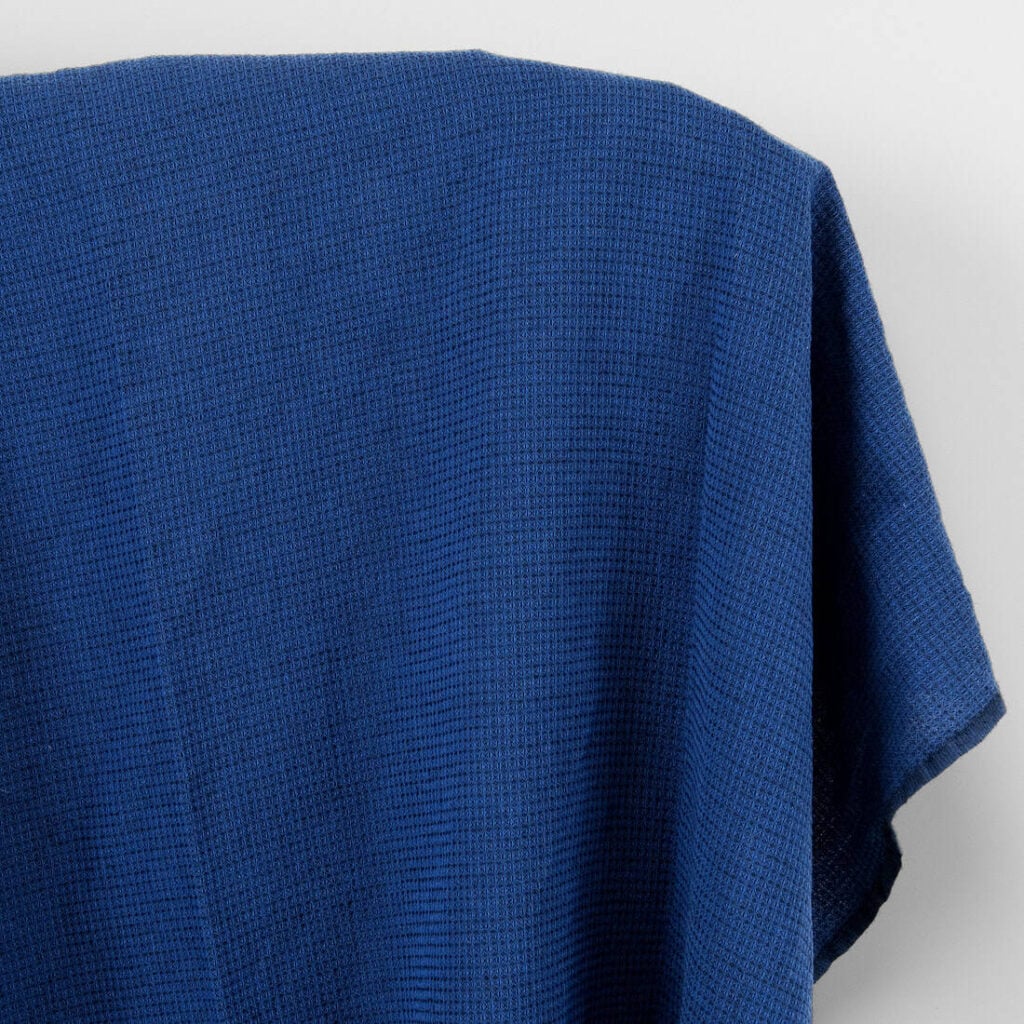 Ľanová bavlnená vlnená tkanina tmavomodrá a čierna vafľa, praná