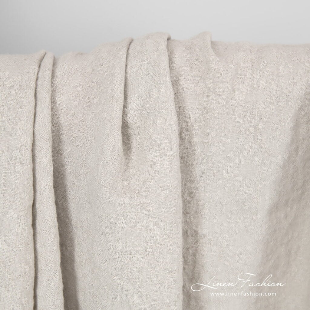Ľanovo-vlnená žakárová sivo-piesková tkanina praná