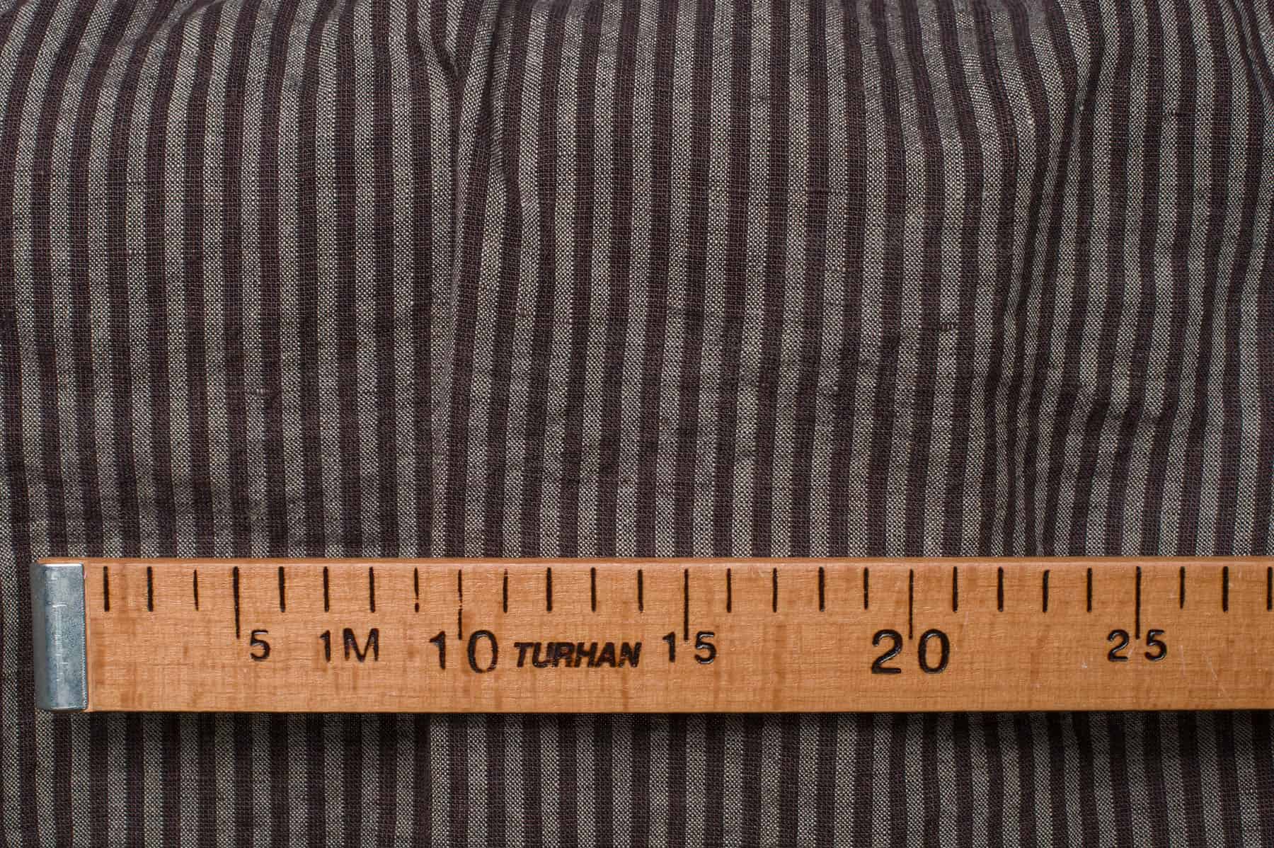 Hnedá pruhovaná ľanovo-vlnená zmesová tkanina, praná