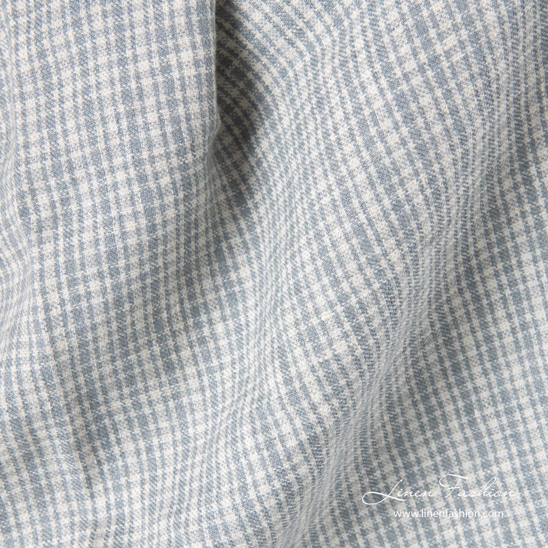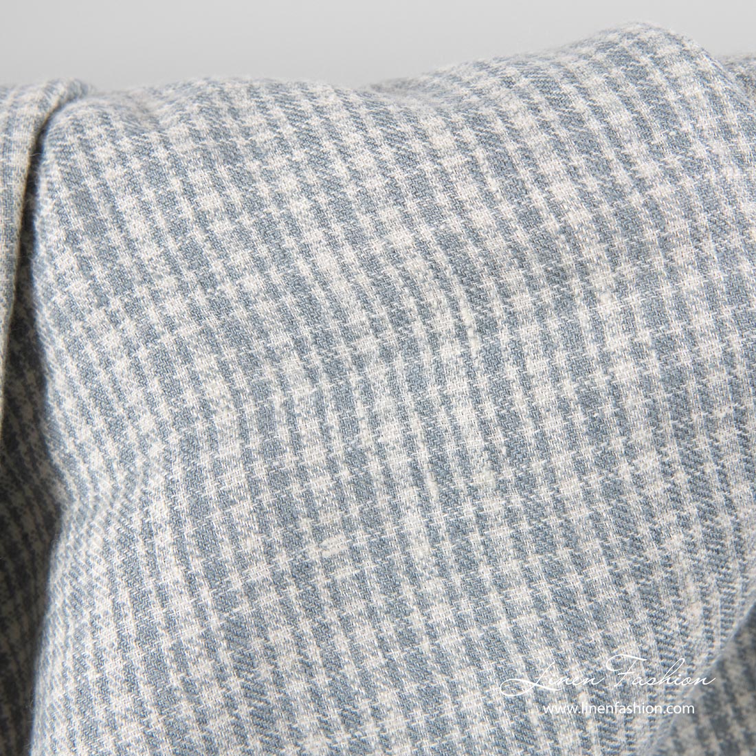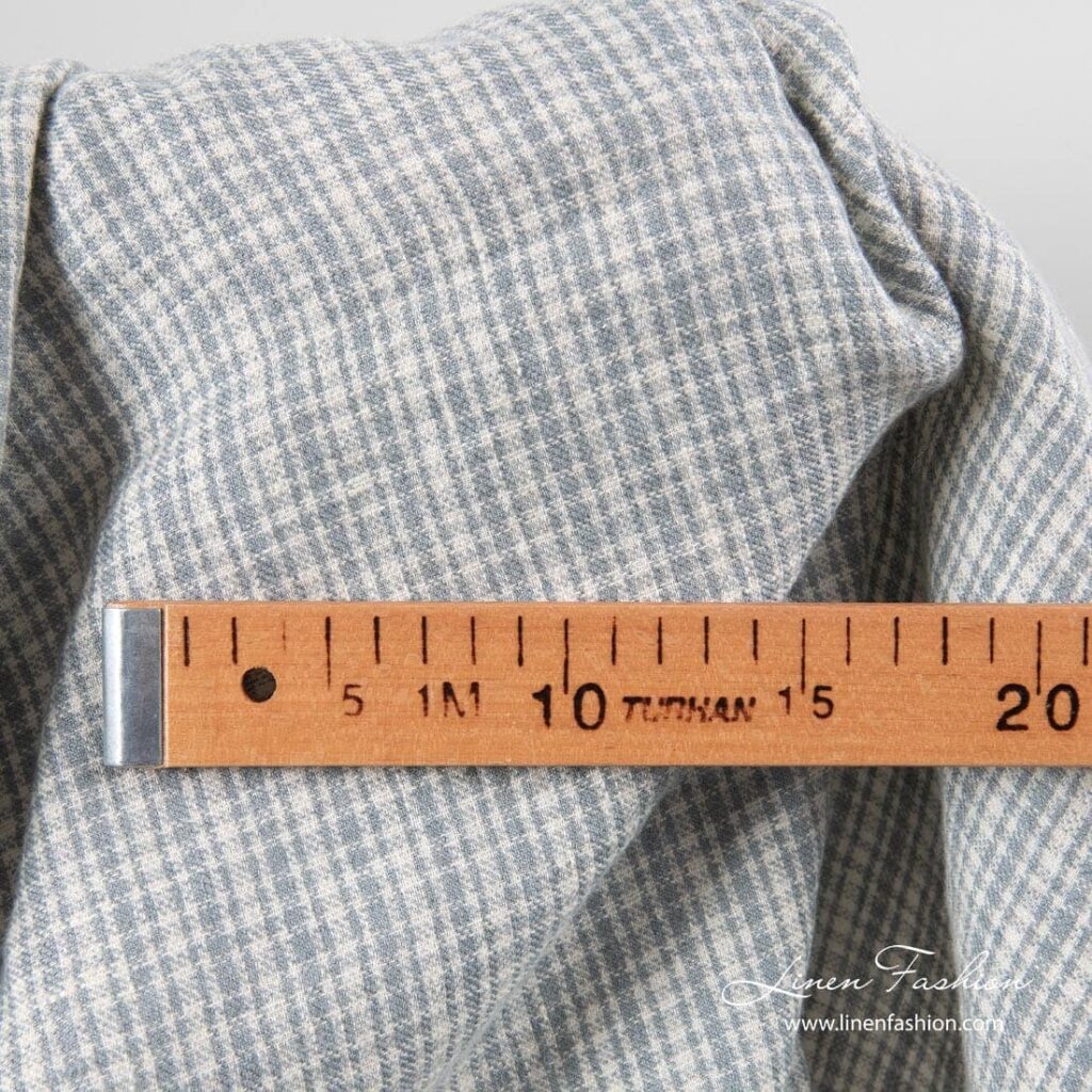 Ľanovo-vlnená tkanina v sivých kockách praná