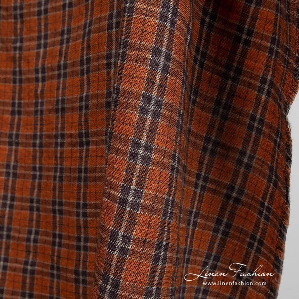 - Farba: zmes priadzí vo farbe pálená oranžová, tmavohnedá, hnedosivá (blízka prírodnému ľanu) a čierna