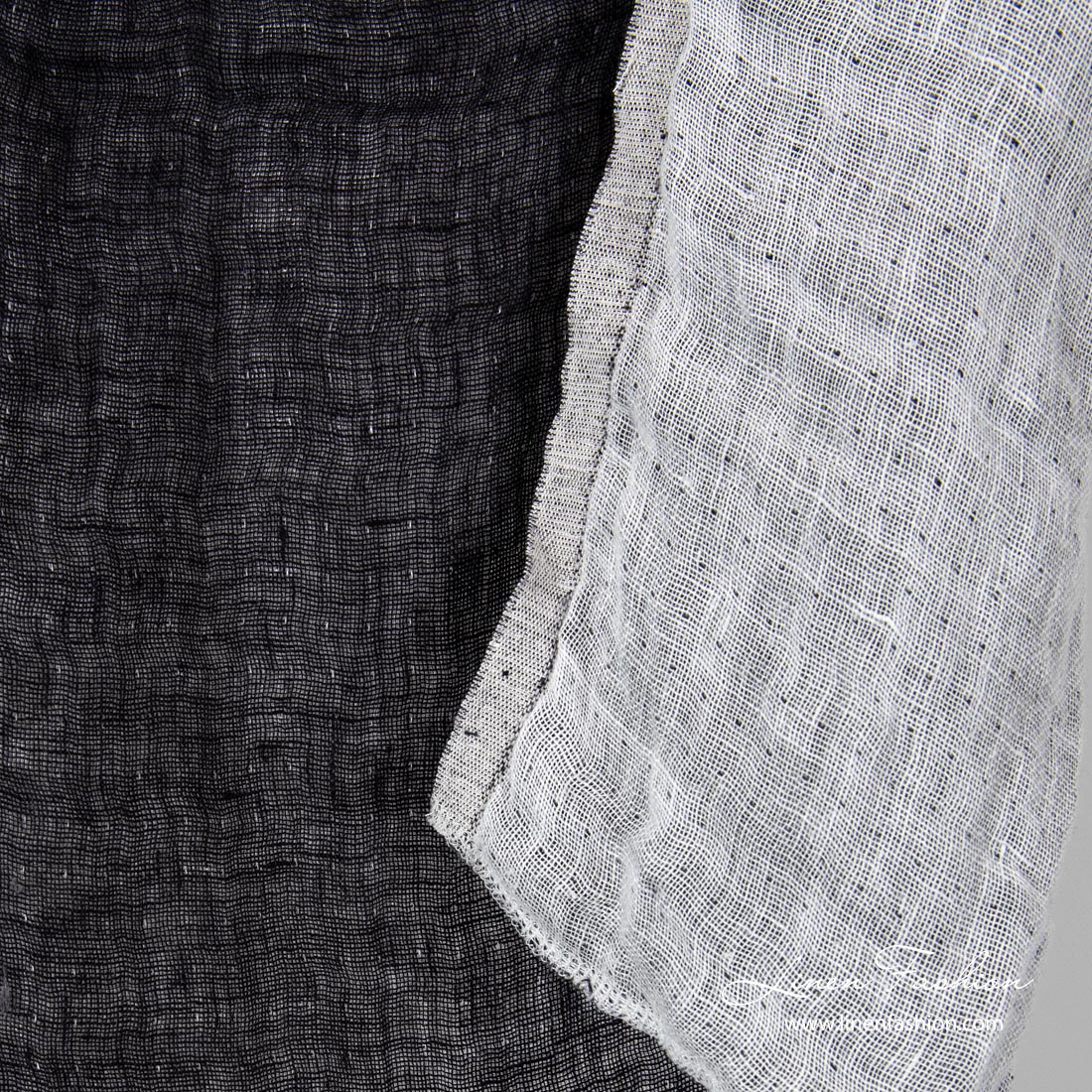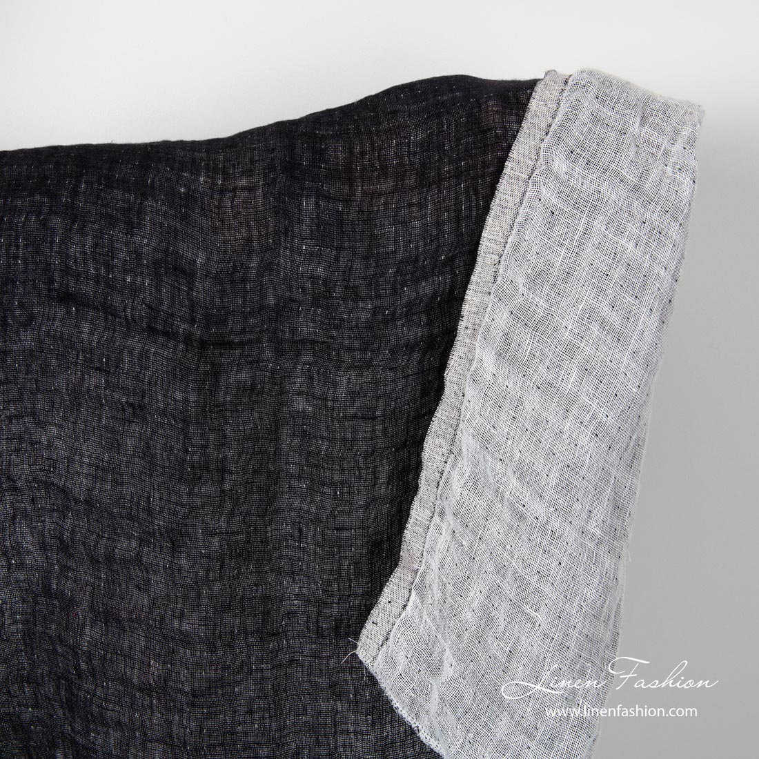 Praná kockovaná ľanová látka tmavomodrá s otvorenou väzbou