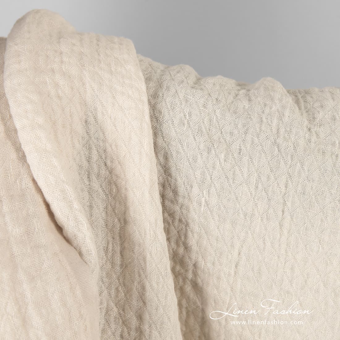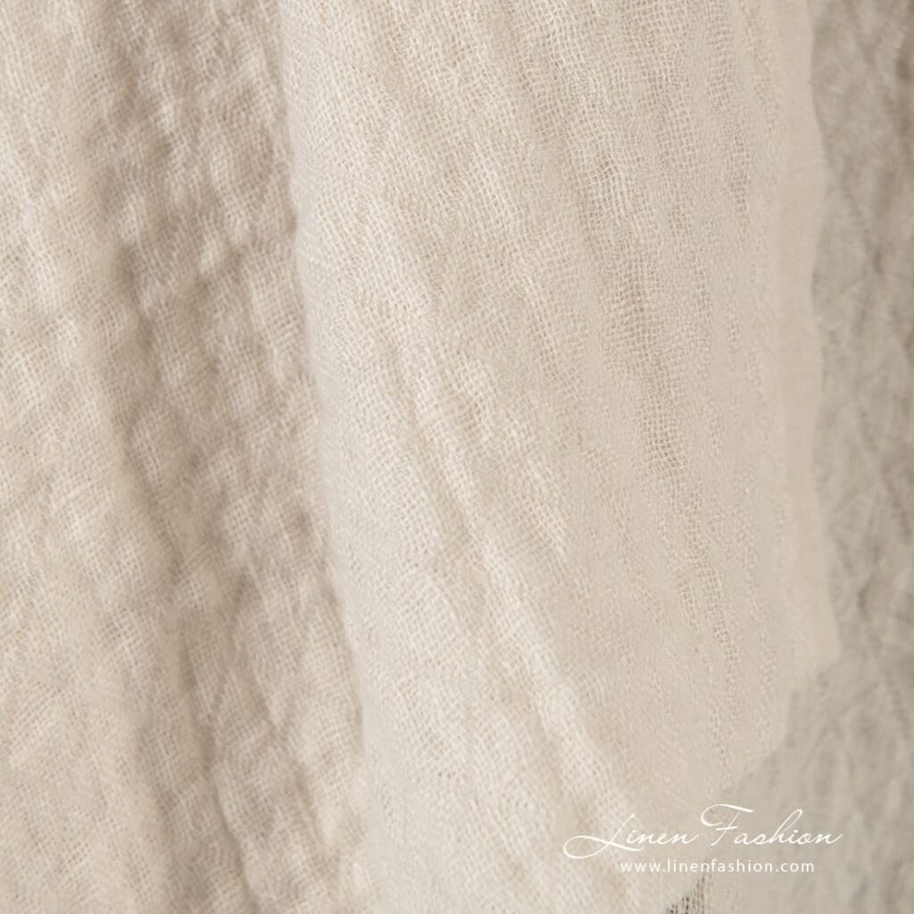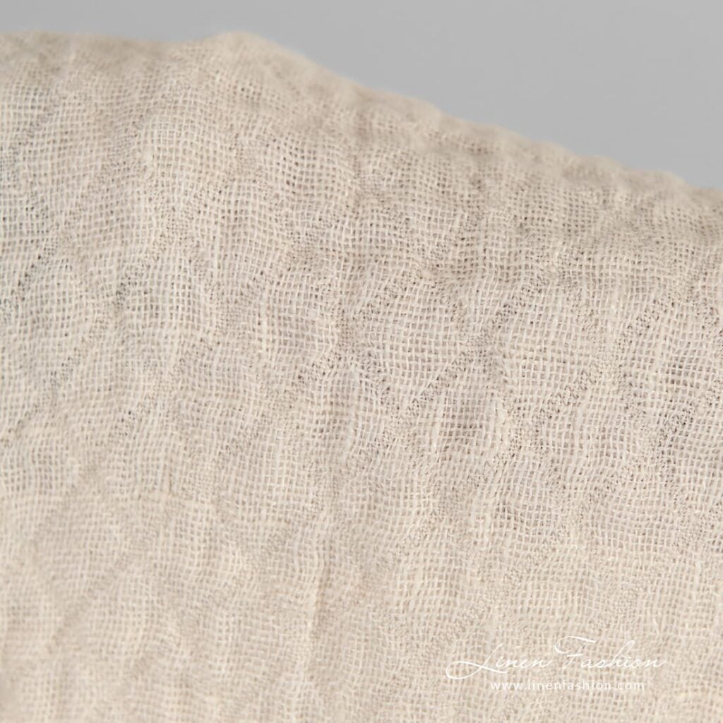Svetlá krémová žakárová ľanová látka v kosoštvorcoch praná