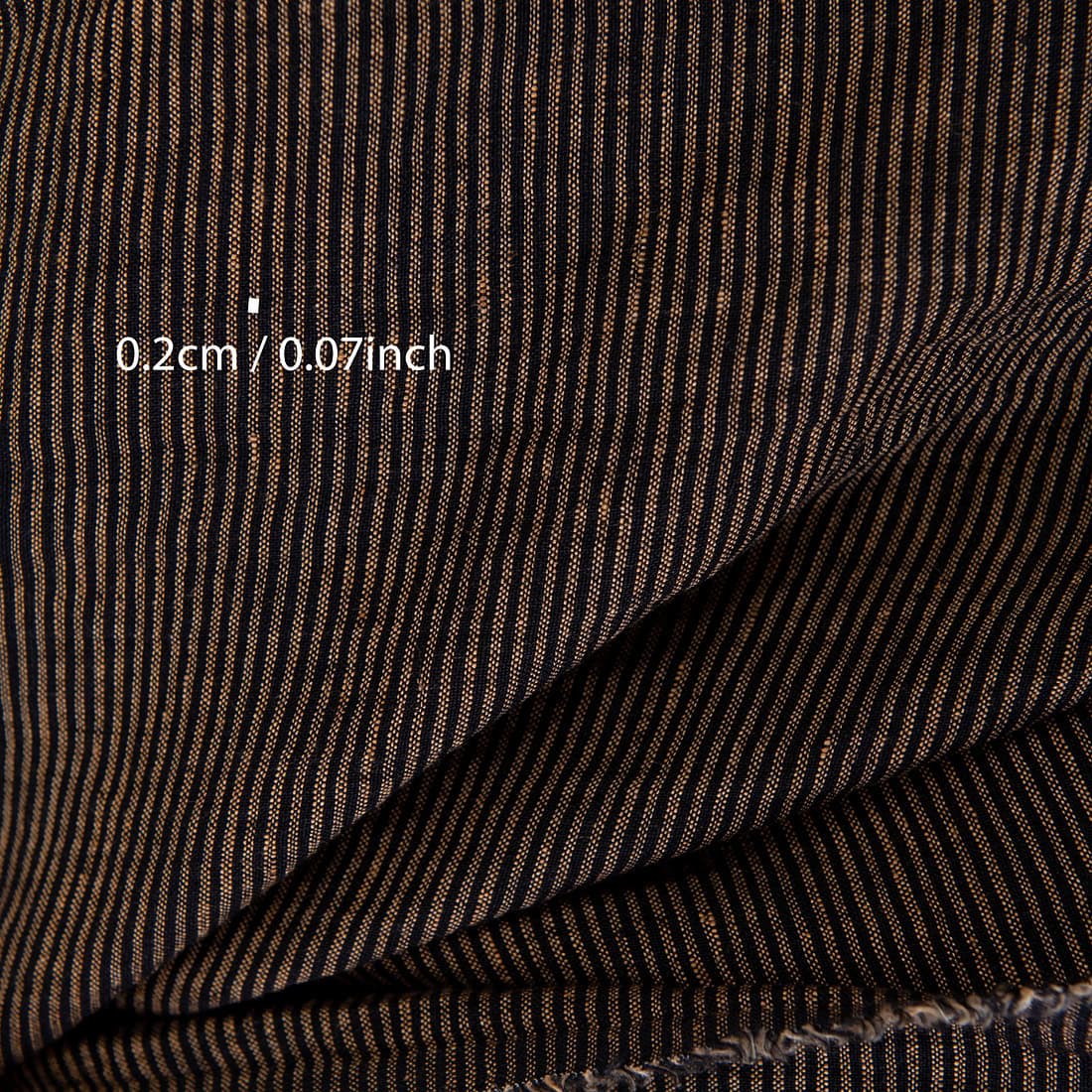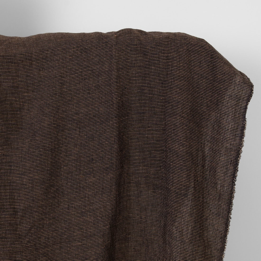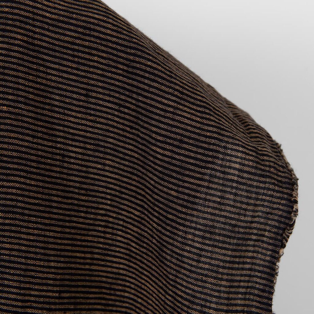 Ľanová látka čierna s malými hlinenými prúžkami praná