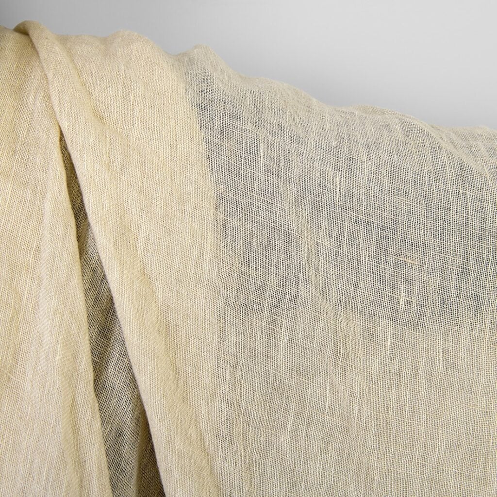 Ľanová látka priesvitná svetlokrémovo žltá, praná