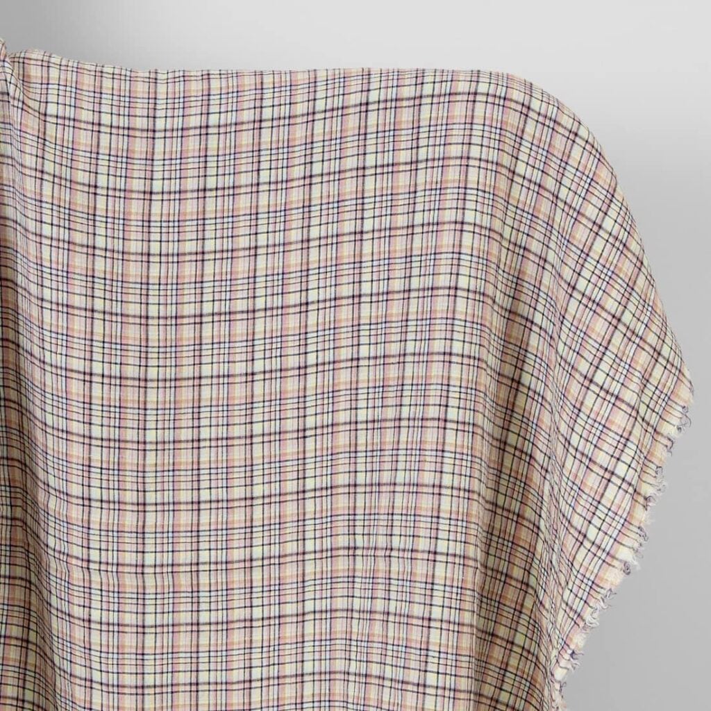 Ľanová látka pastelové viacfarebné a tmavomodré kocky praná