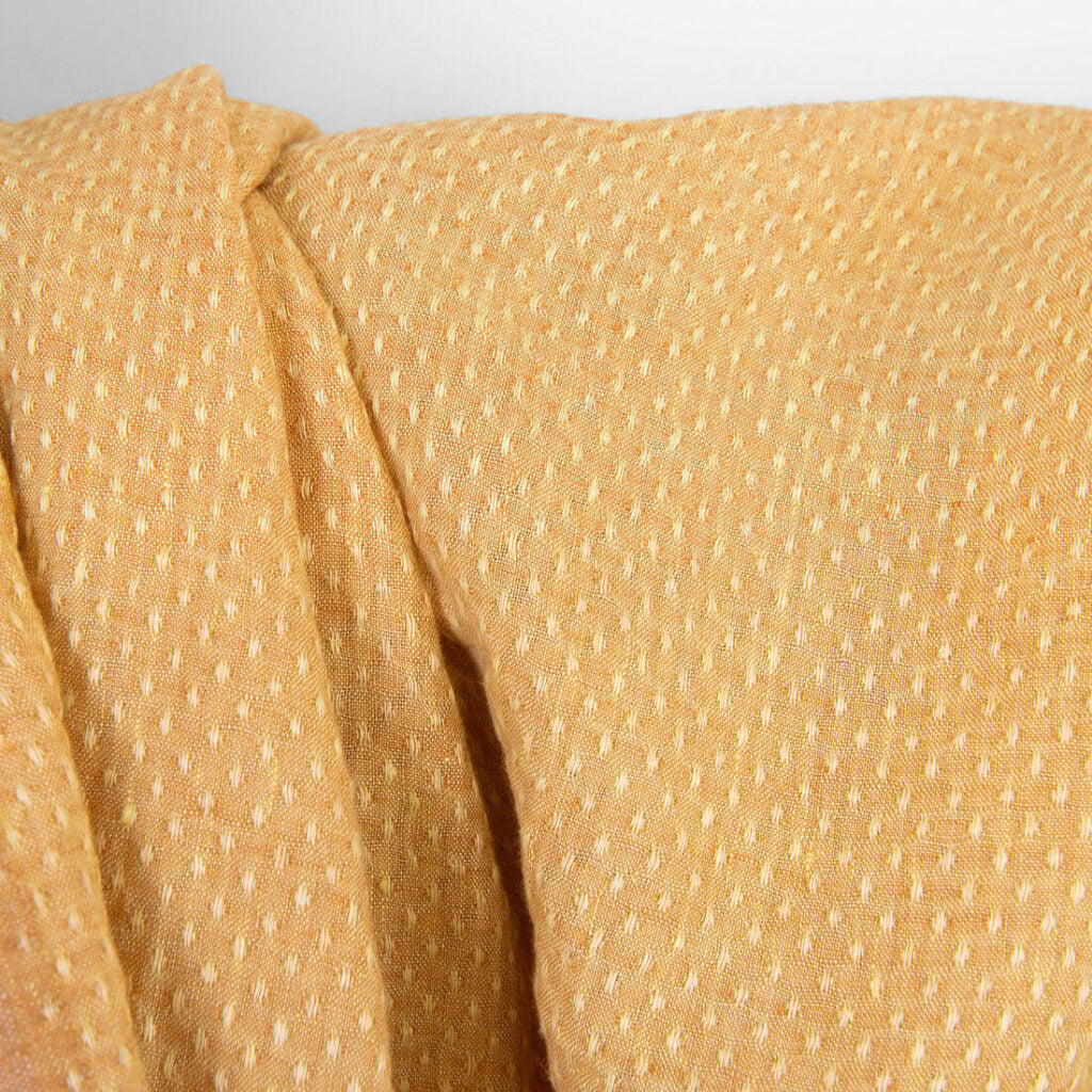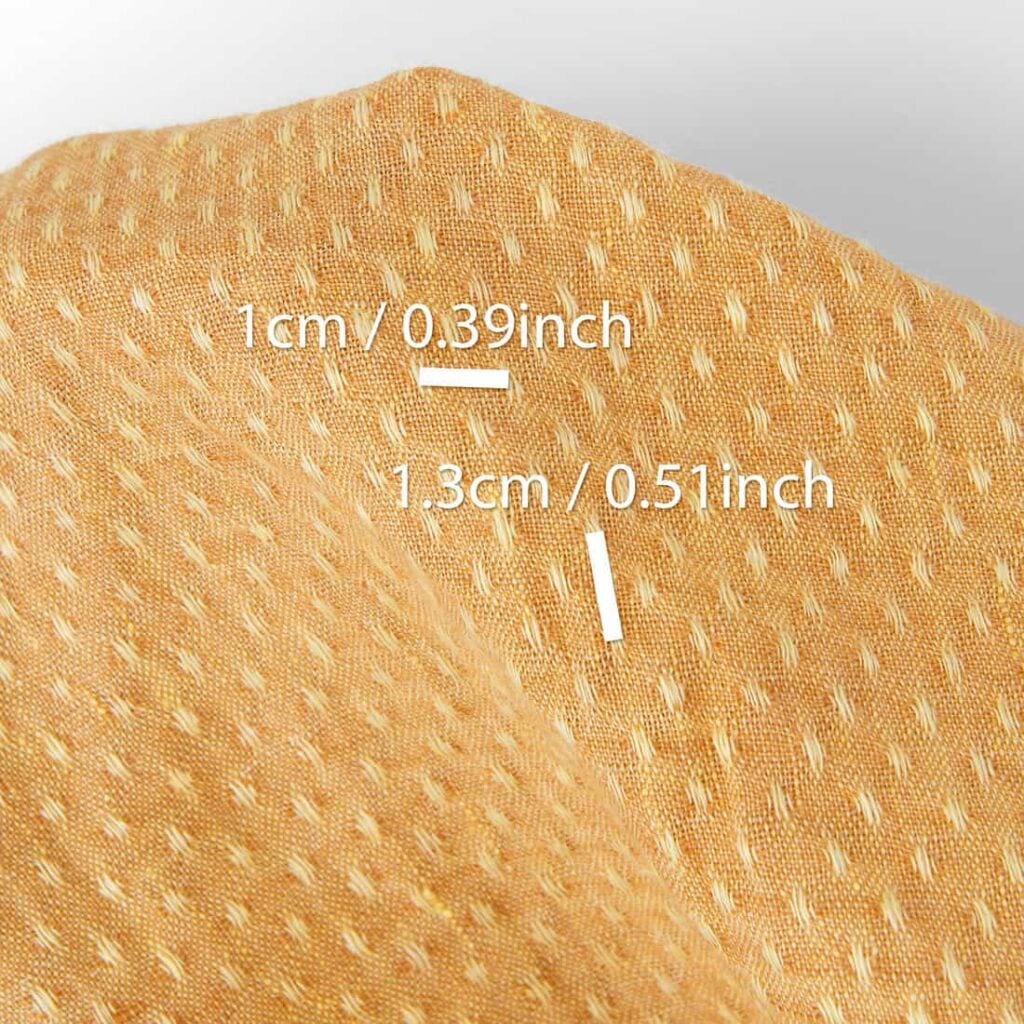 Ľanová látka svetložltá a tehlová bodkovaná, praná