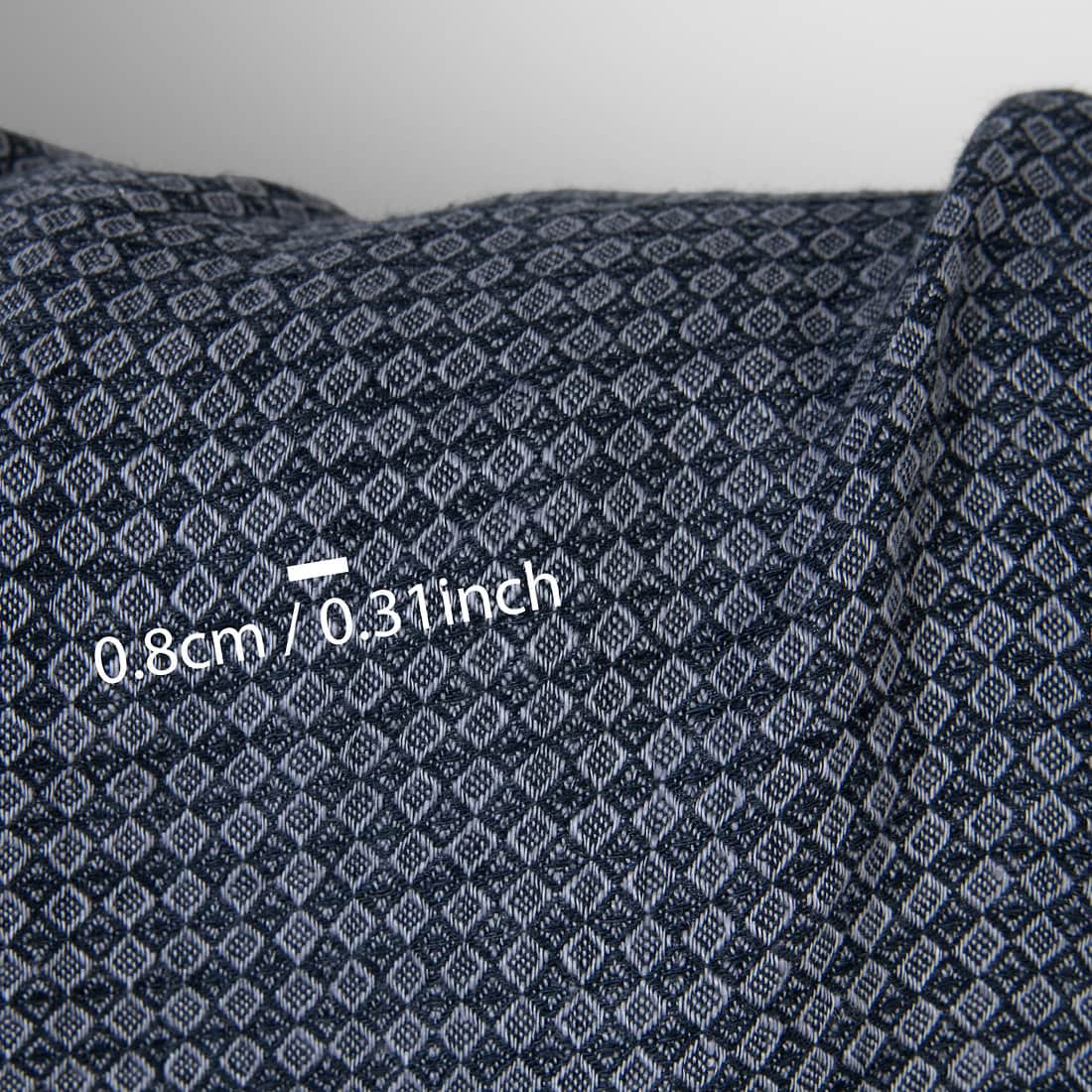 Ľanová látka tmavomodré a sivé kosoštvorce praná