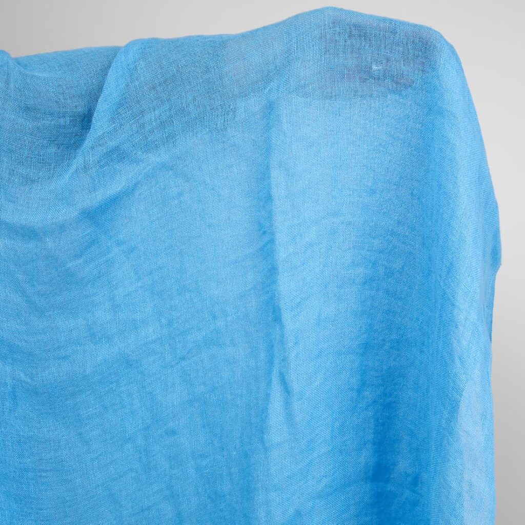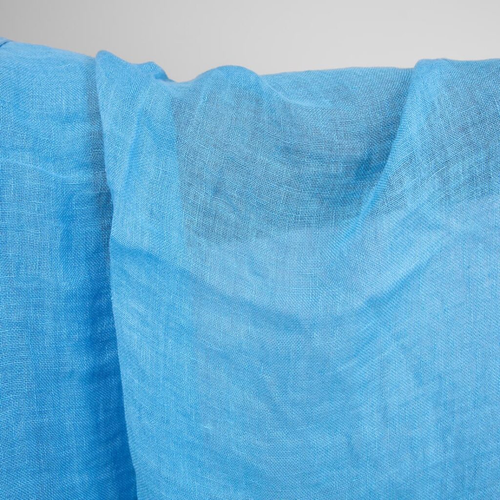 Ľanová gázovina jasne modrá praná tkanina
