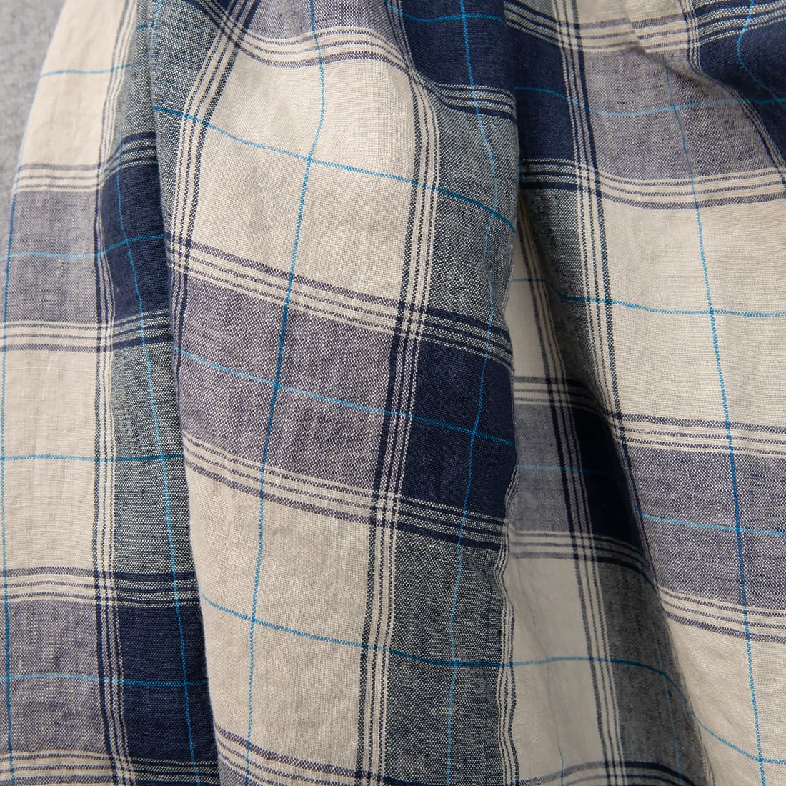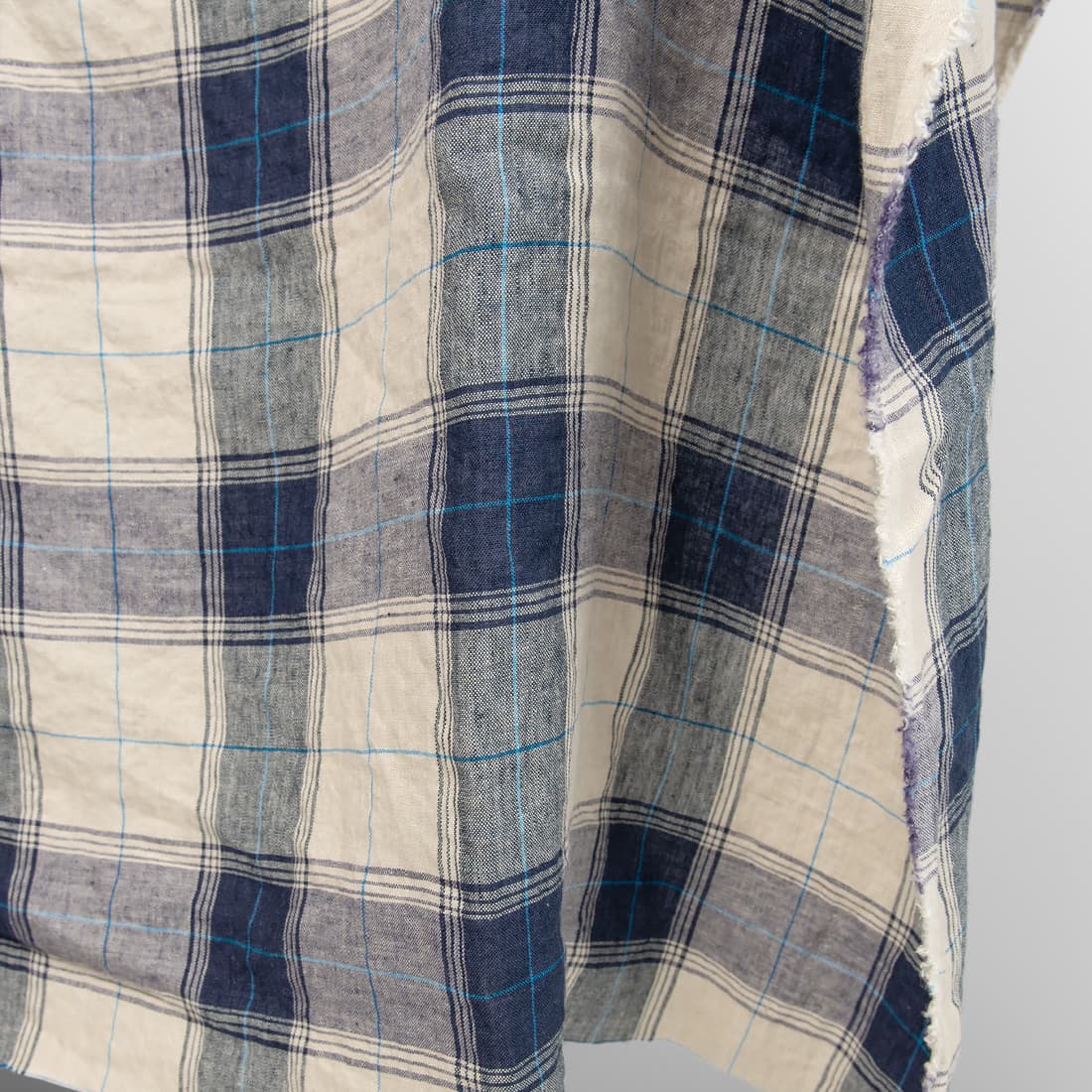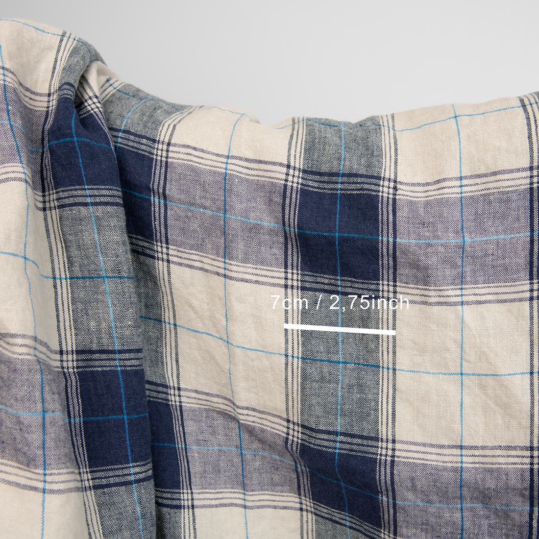 Ľanová praná látka s kockovaným vzorom v modrých odtieňoch