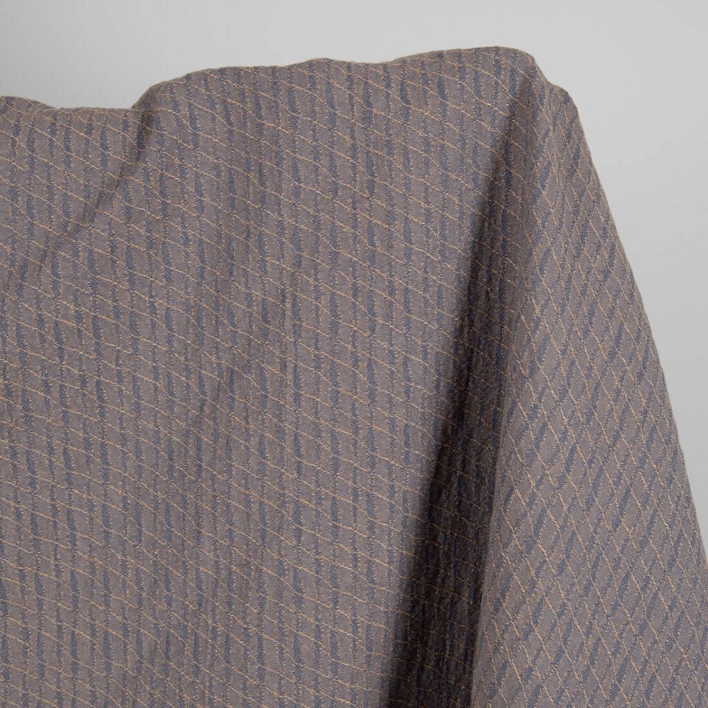 množstvo Praná ľanovo-bavlnená tkanina modrosivý a hnedý vzor
