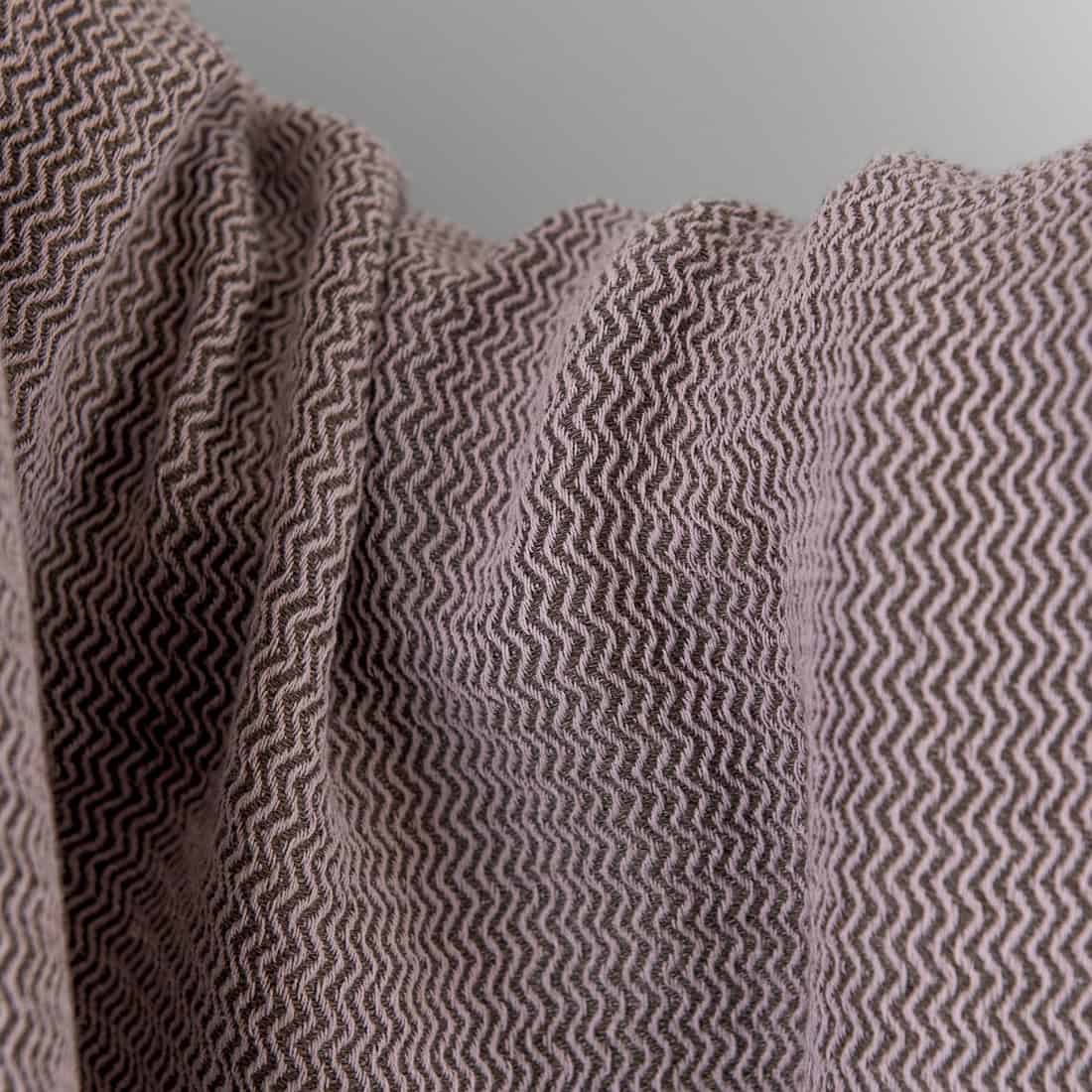 Ľanovo-bavlnená hrubá látka orgovánová a hnedá cikcak praná