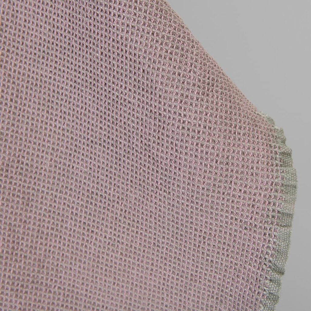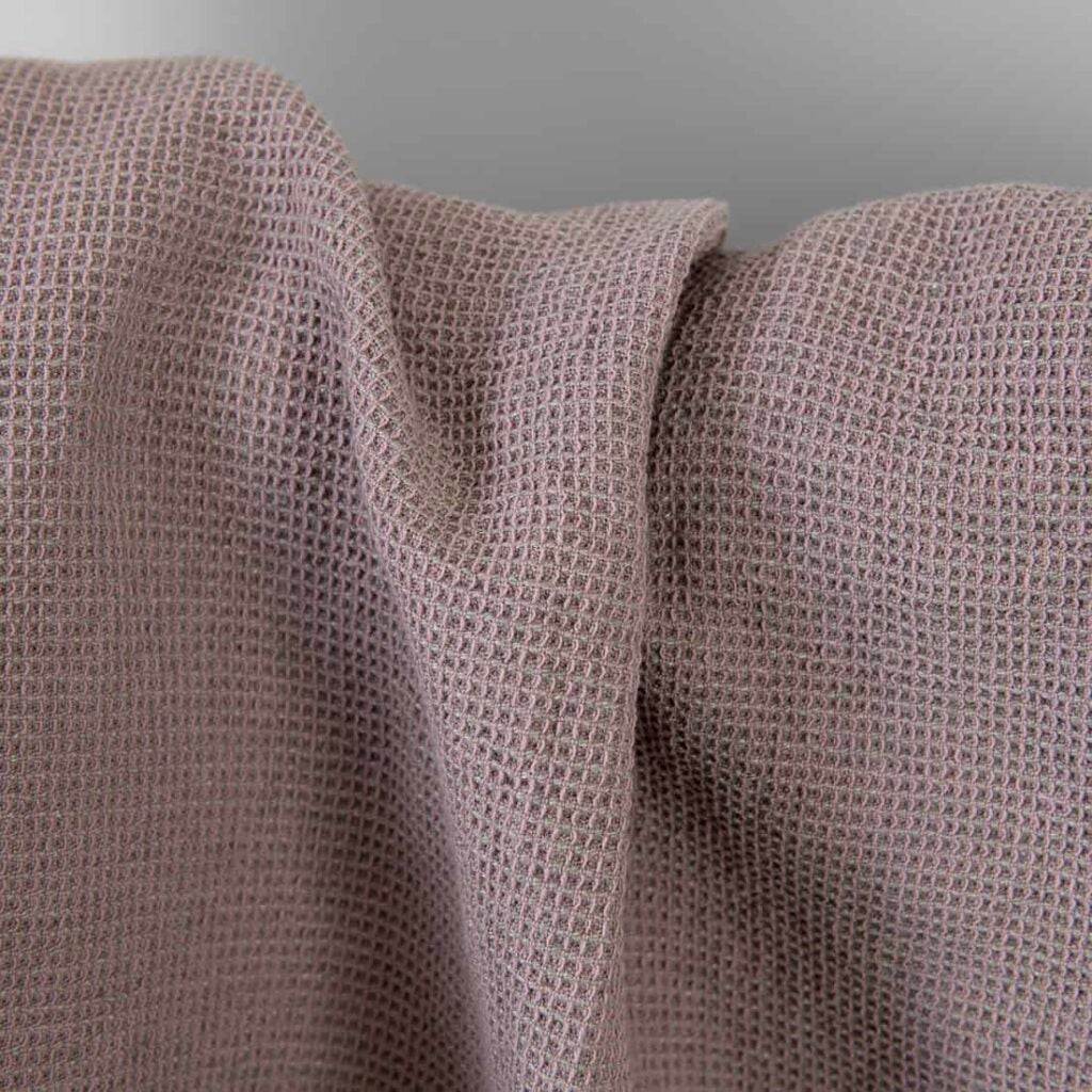 Ľanovo-bavlnená hrubá tkanina orgovánová a sivá vafľová praná