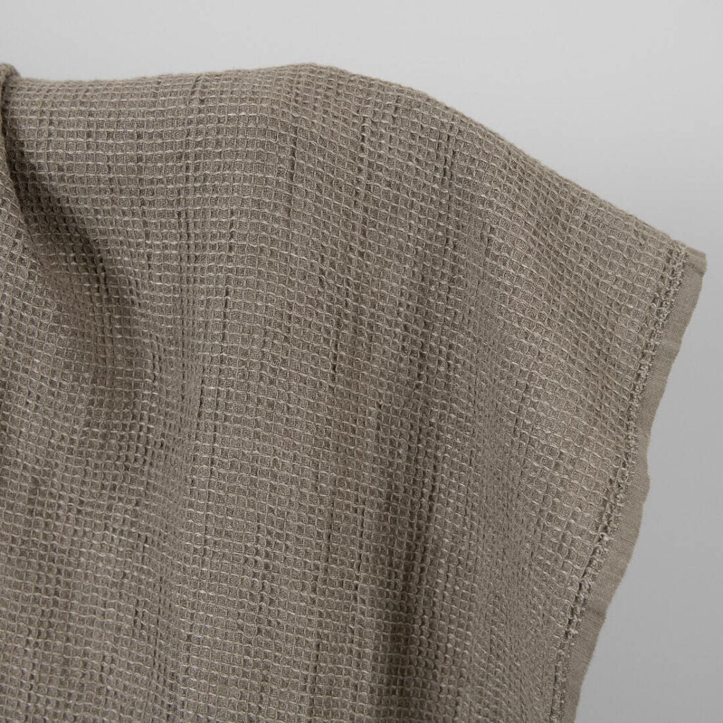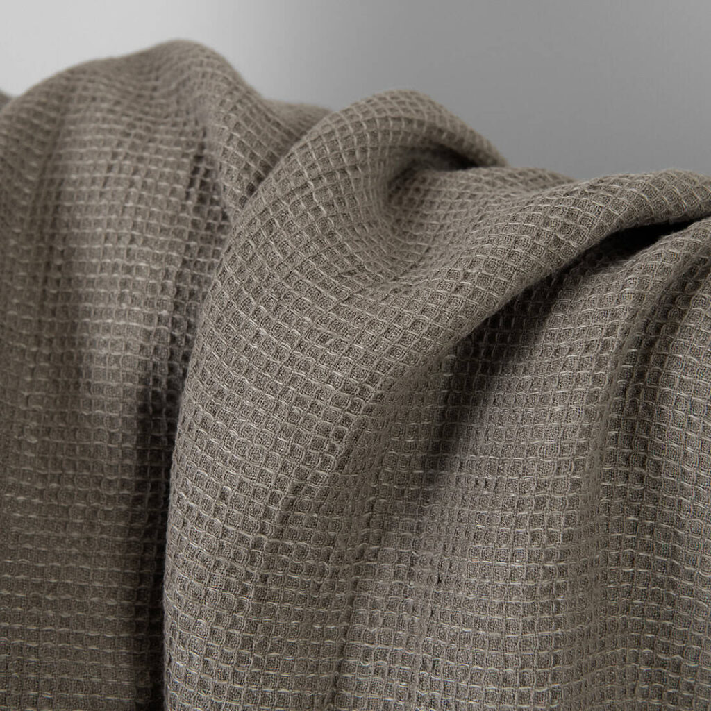 množstvo Ľanovo-bavlnená látka béžovo-sivá vafľová praná