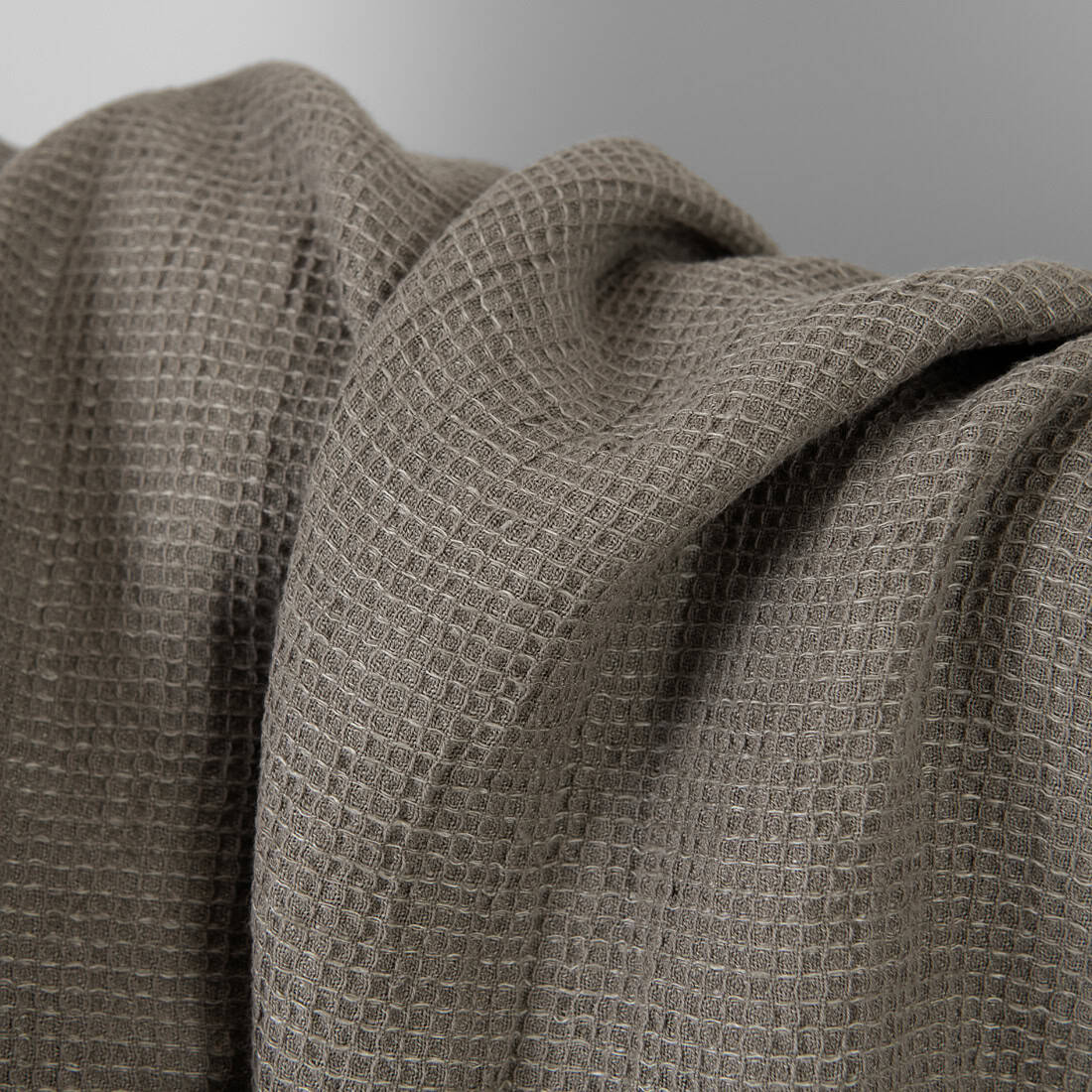 Ľanovo-bavlnená látka béžovo-sivá vafľová praná