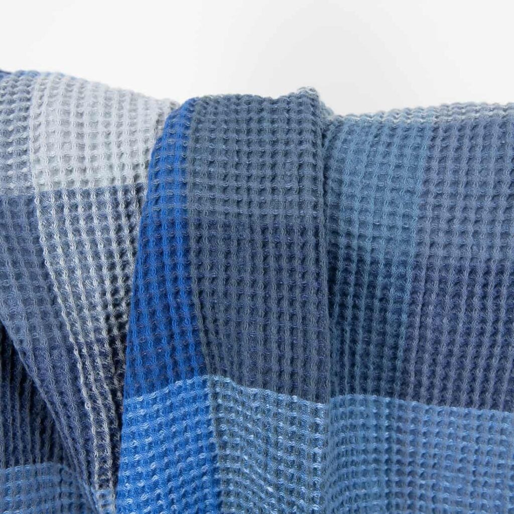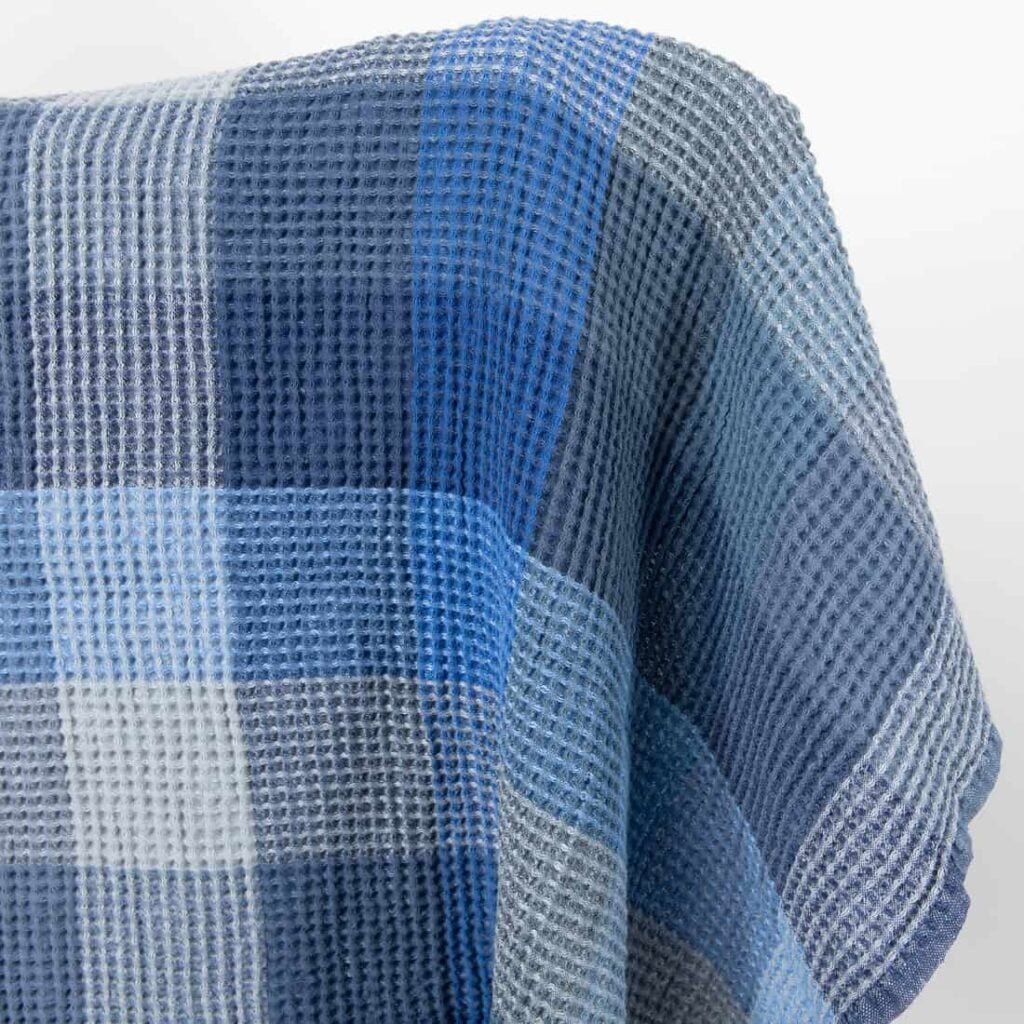 Ľanovo-bavlnená vafľová látka modré kocky praná