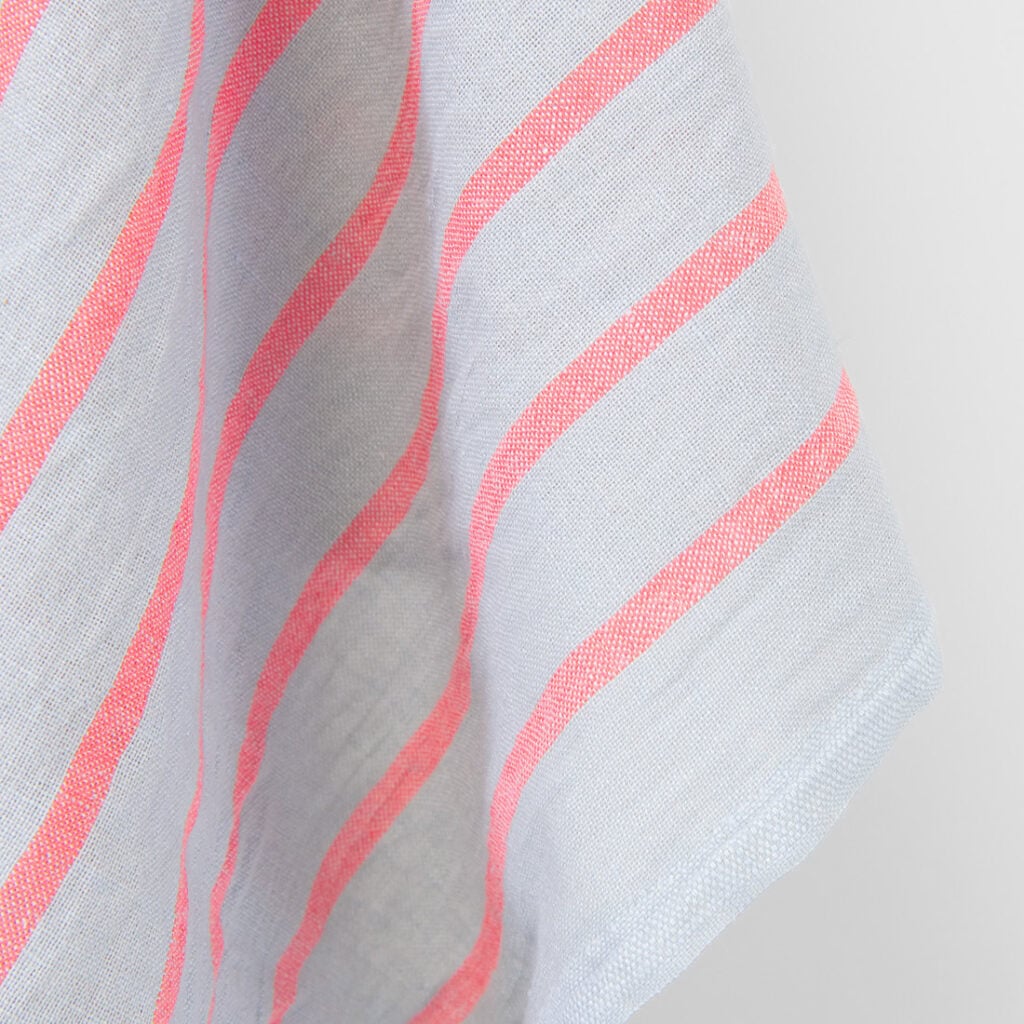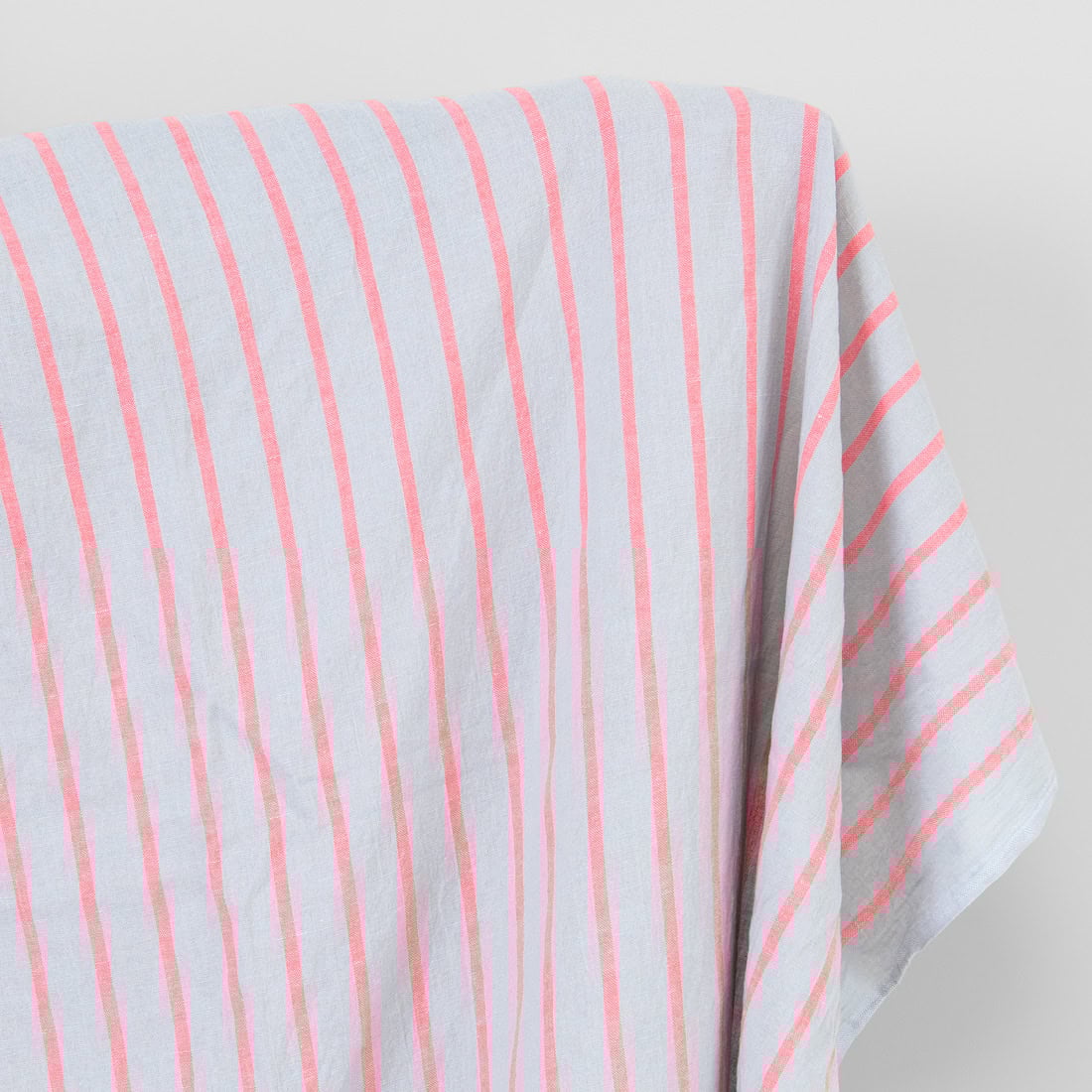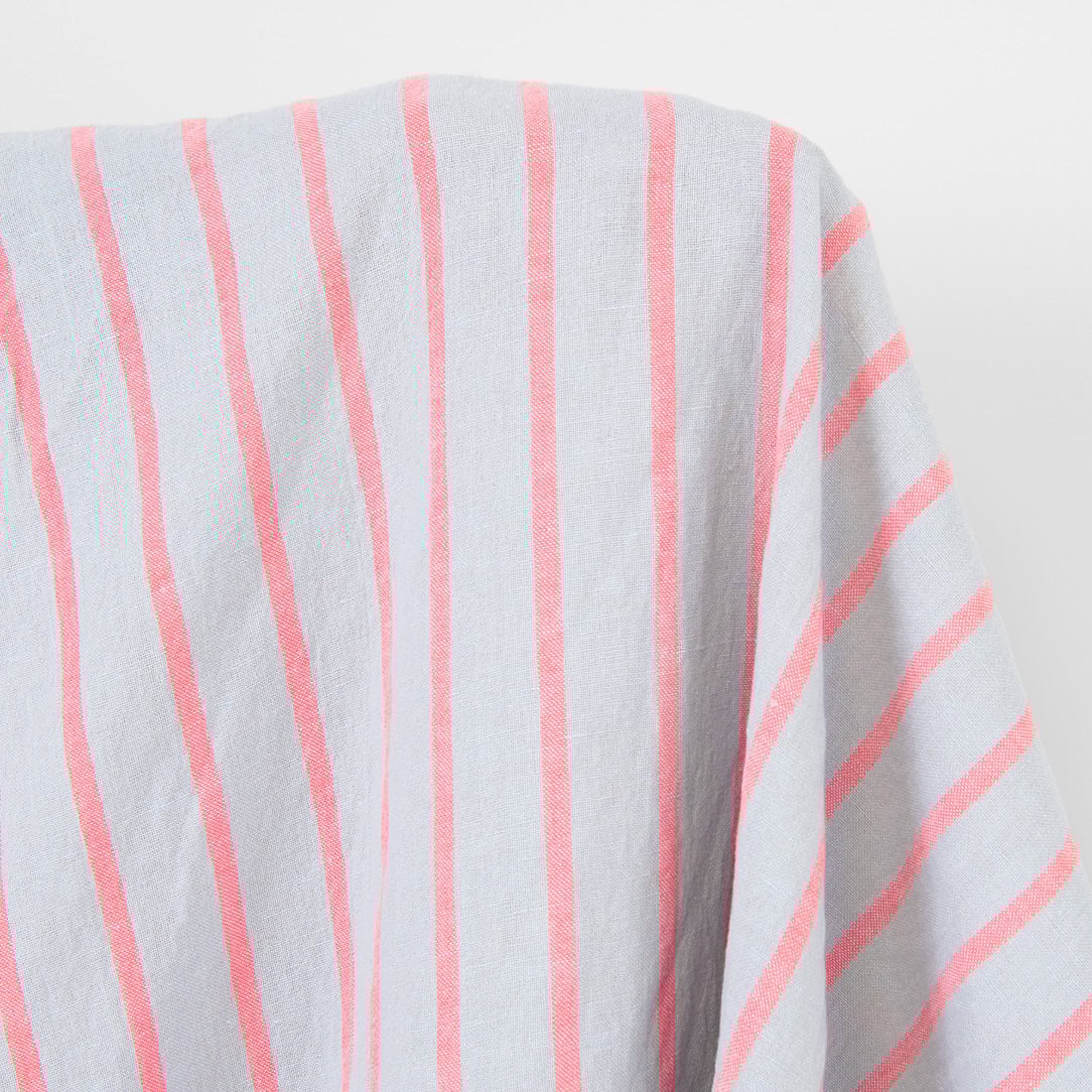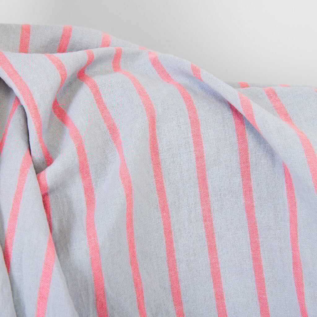 množstvo Ľanovo-bavlnená látka svetlosivá s jasne červenými pruhmi, praná