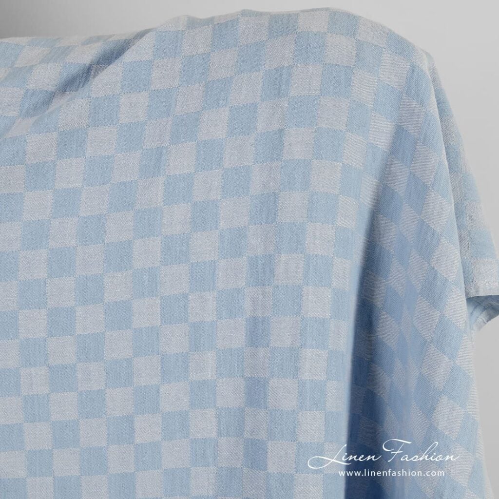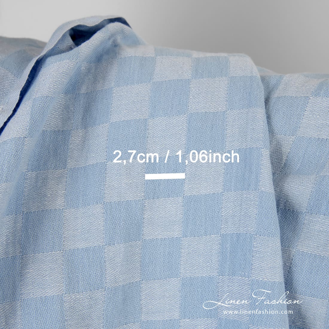 množstvo Modrastá ľanovo-bavlnená tkanina v kockách, praná