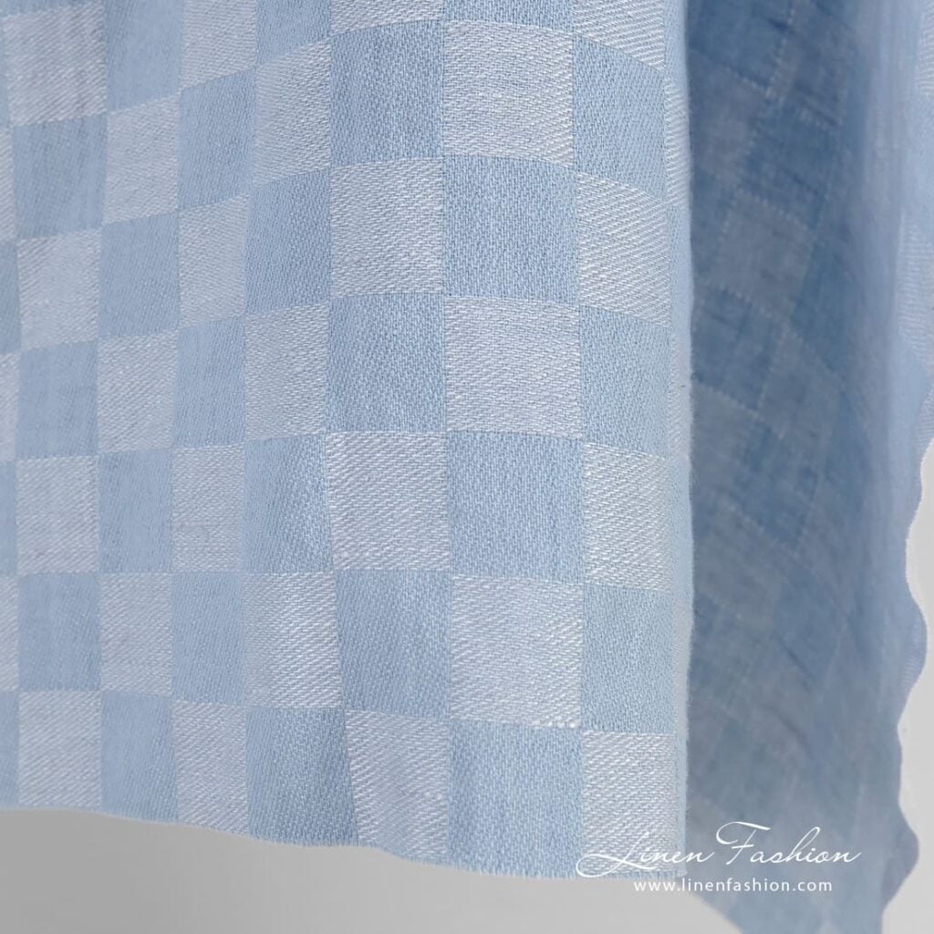 Modrastá ľanovo-bavlnená tkanina v kockách, praná