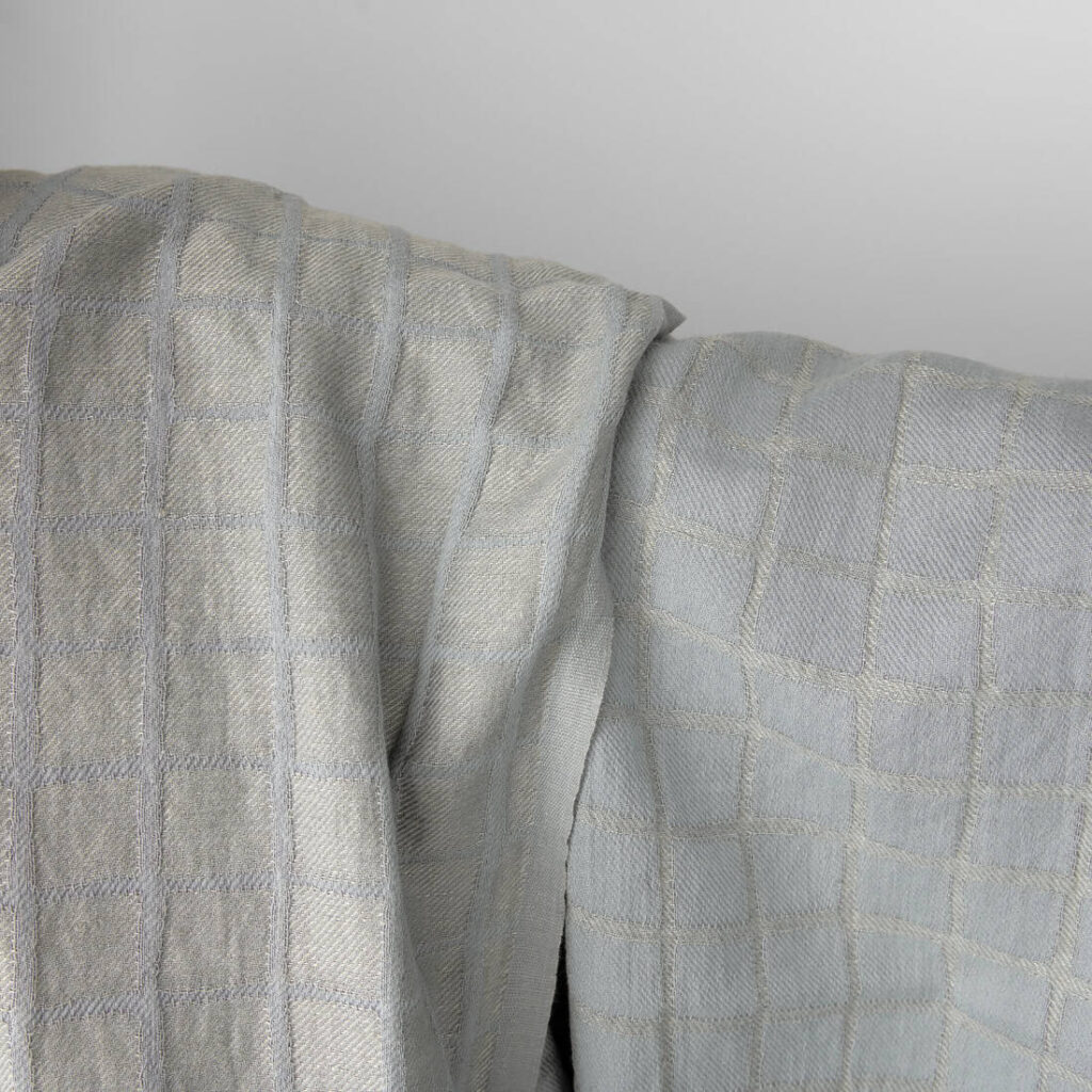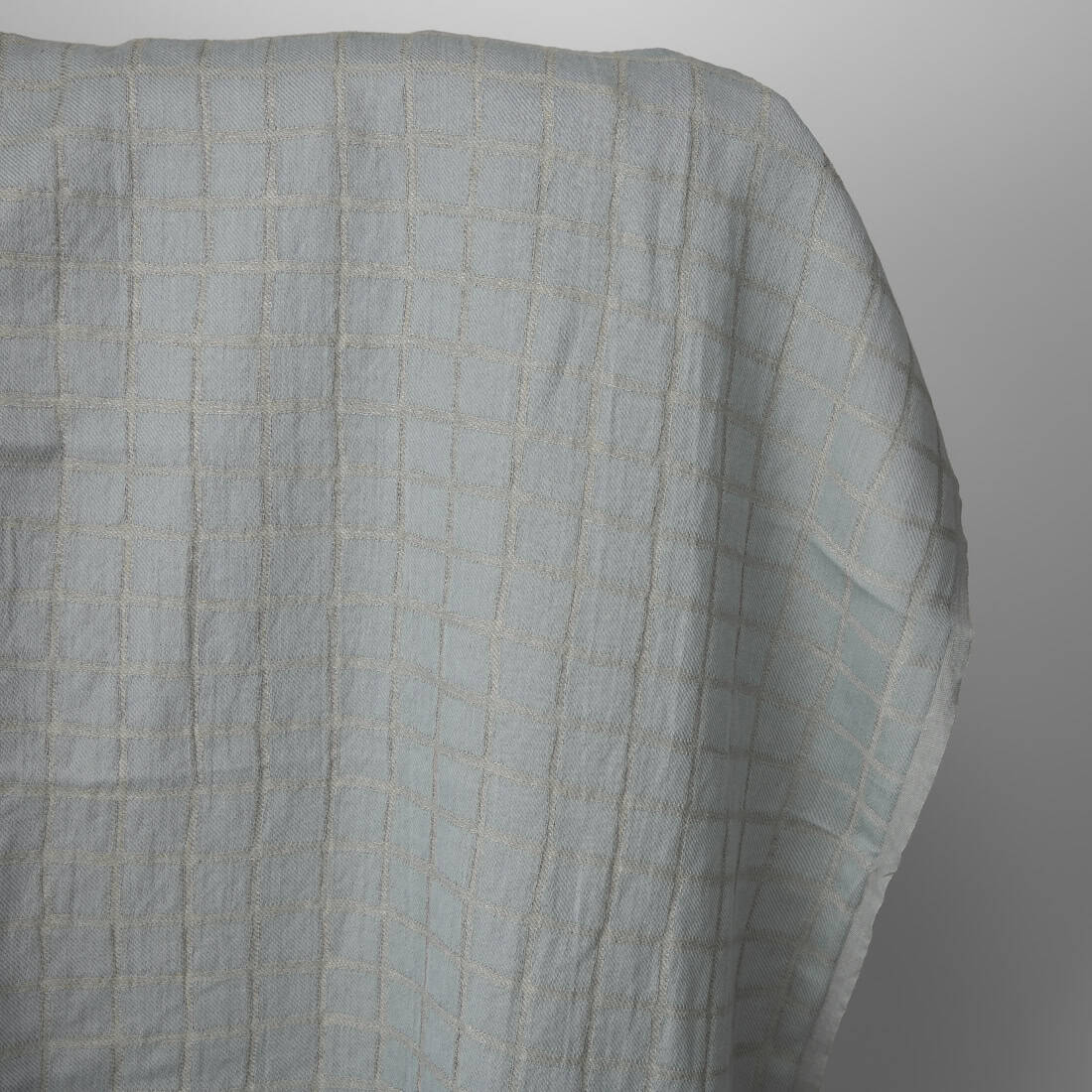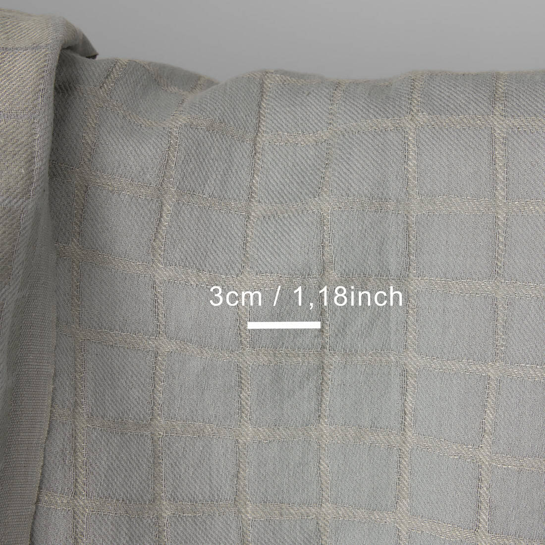 Modrosivá kockovaná ľanovo-bavlnená látka praná