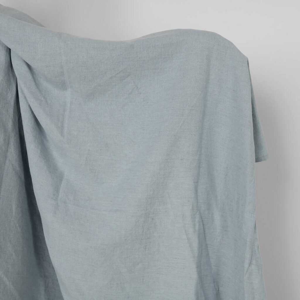 Praná ľanovo-bavlnená tkanina sivo-modrá